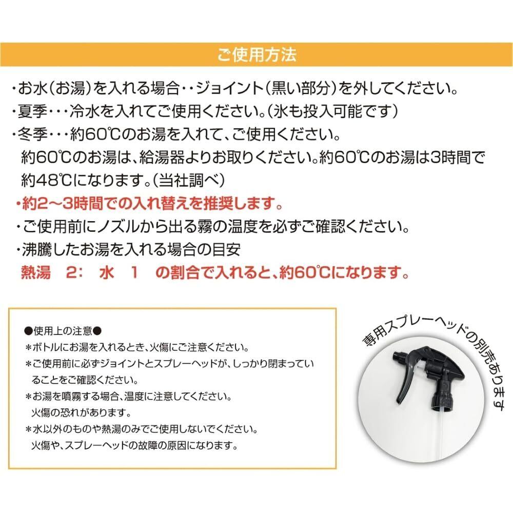 ステンレス製ボトル(二重構造の容器)で、保温・保冷性能に優れているスプレイヤーです。