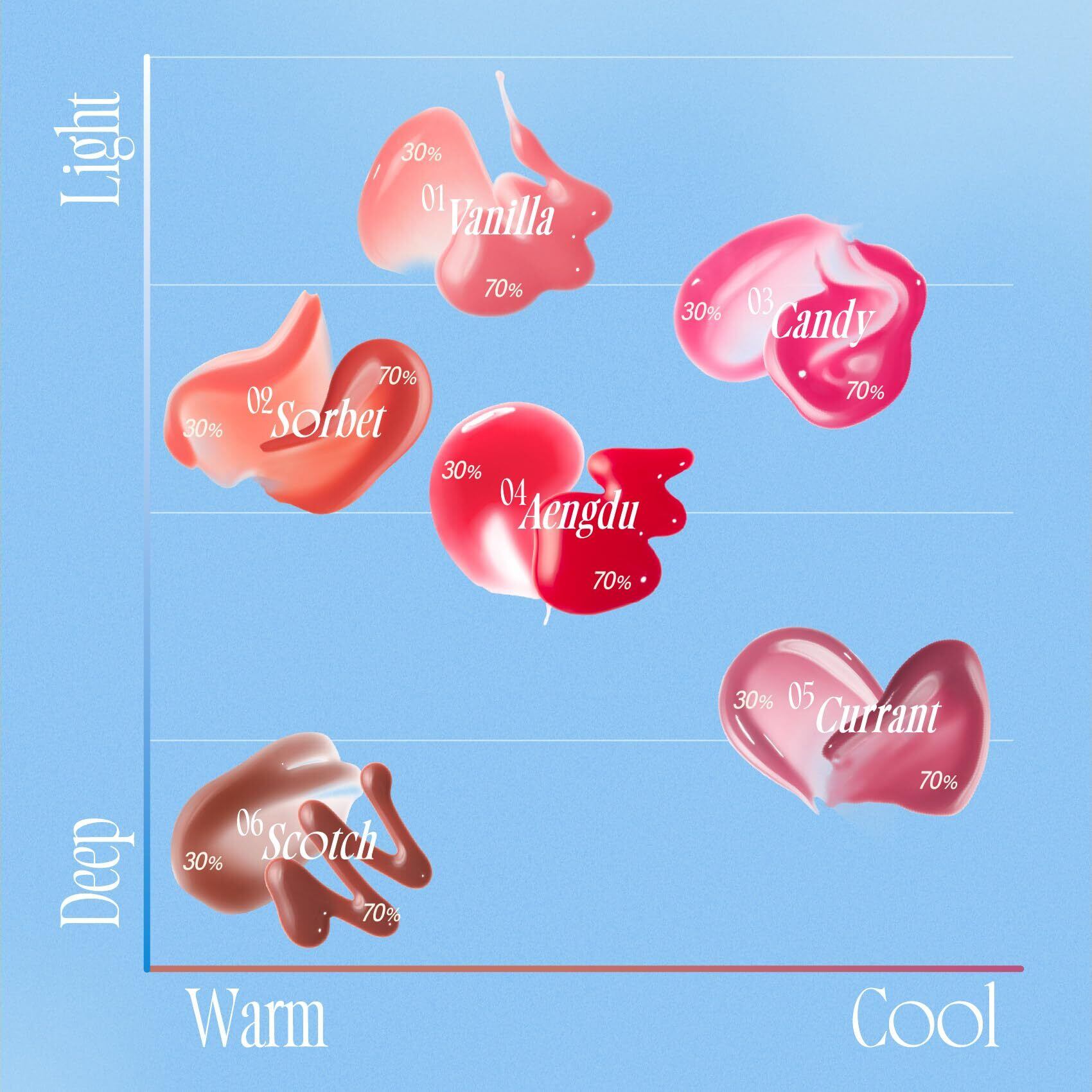 もちっとした3D立体光沢は同じ! ピュアな魅力を出したい日には30%,視線を集めたい日には70%であなたの求めるムードを演出してください。
