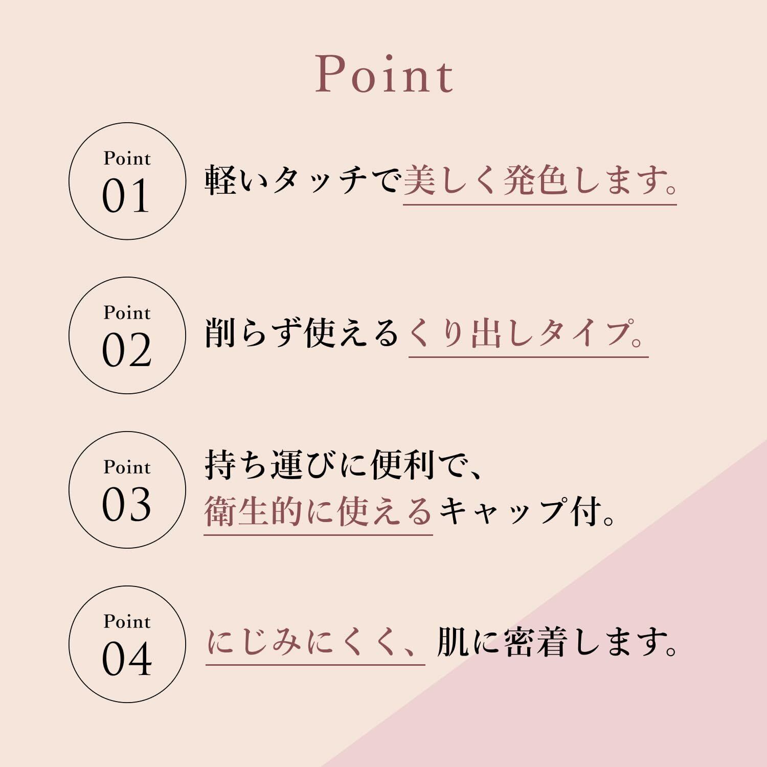 【携帯にも便利な繰り出し式】外出時の持ち運びにも使いやすい、削らず使える繰り出しタイプです。キャップ付きで、衛生的に使用可能です。