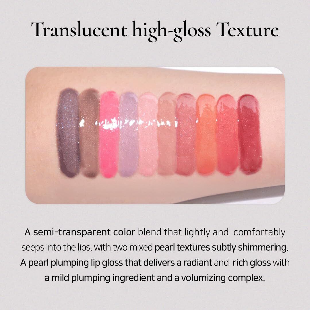 透けるカラー感とささやくようにさりげなく光るパール 厚手な光膜のプランピング リップグロス、パール・キスドプランピングリップグラッセ
