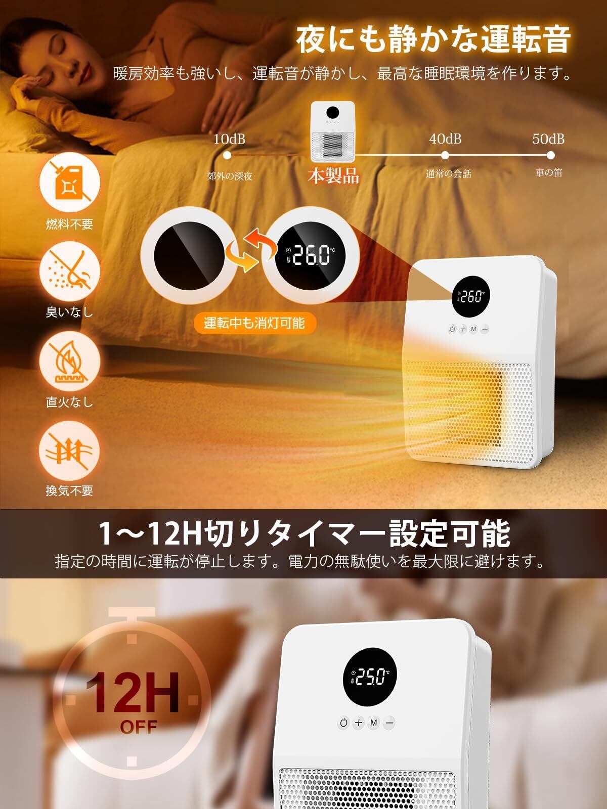 【2秒速暖・超静音・リモコン付き・8畳対応・換気不要】当社の電気暖房器具は電源が入れてから、待ち時間がなくすぐに暖風が届けます。同類品より、運転音が静かで、寝室の雰囲気に合います。燃料不要で、イヤなニオイが発生しなく、度々に窓を開けて換気する必要がありません。寒い冬の夜、イヤなニオイやうるさいな運転音がなく、快眠環境を作ってくれます。その上、わざわざ布団から出なくてもリモコンでヒーターのモードを設定できます。便利な一品!