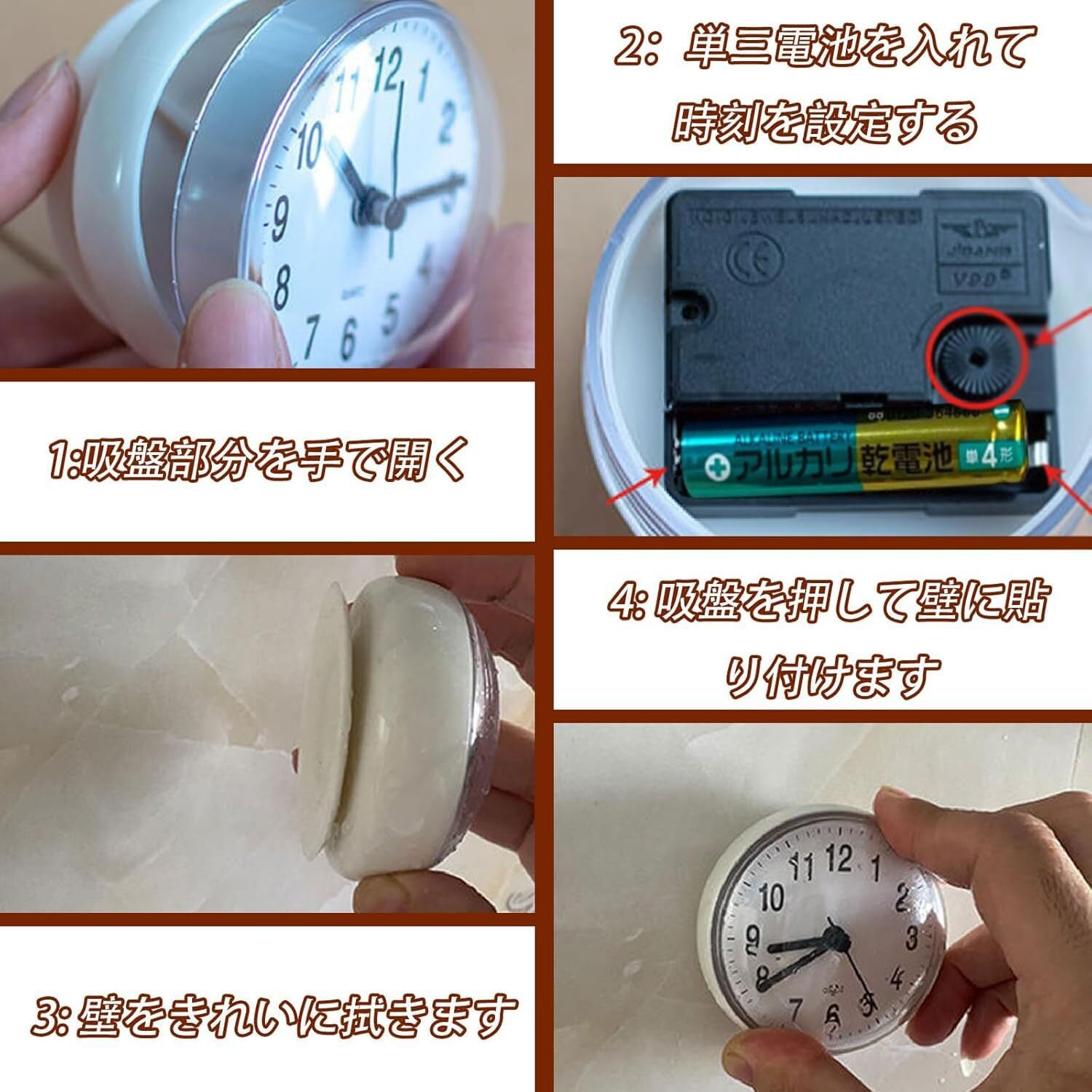 【家庭用ミニ時計】1個の単4電池で駆動する電池は含まれていません。壁、鏡、などの滑らかで乾燥した表面に取り付けることができる強力な吸盤付きのデザイン、耐久性があり長寿命です。