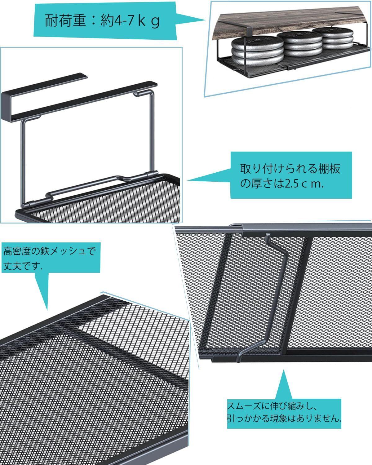 設置簡単:吊り下げ収納は折り畳み式と穴あけネジ止め不要の即插即用設計により、経験のないユーザーでも簡単に取り扱うことができます。掛け場所の適用範囲にご注意ください:棚板の厚さ1.5~2.5cmまでに対応。棚板の幅:38.5cm以上。
