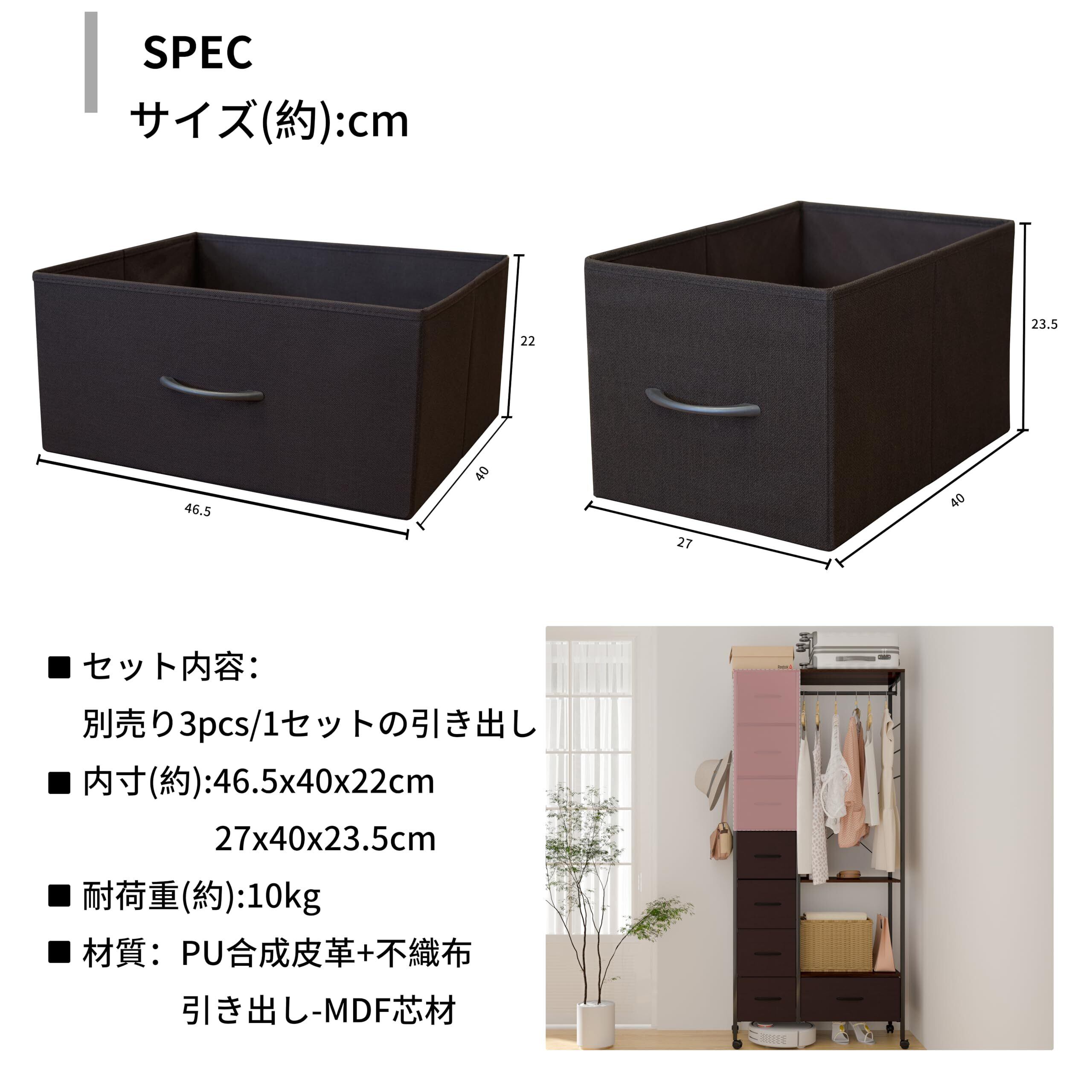 LunarLight ハンガーラック ワードローブ と組み合わせ別売の収納ボックス 布製引き出し 3点セット 洋服収納 衣類収納 (ダークブラウン, 3D)