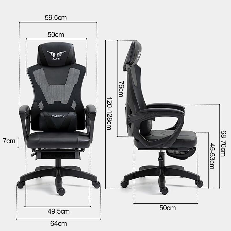 AJHH ゲーミングチェア メッシュ素材 げーみんぐチェア 通気性 リクライニング機能 オフィスチェア 135°ゲームチェア 高級PUレザー オットマン付き