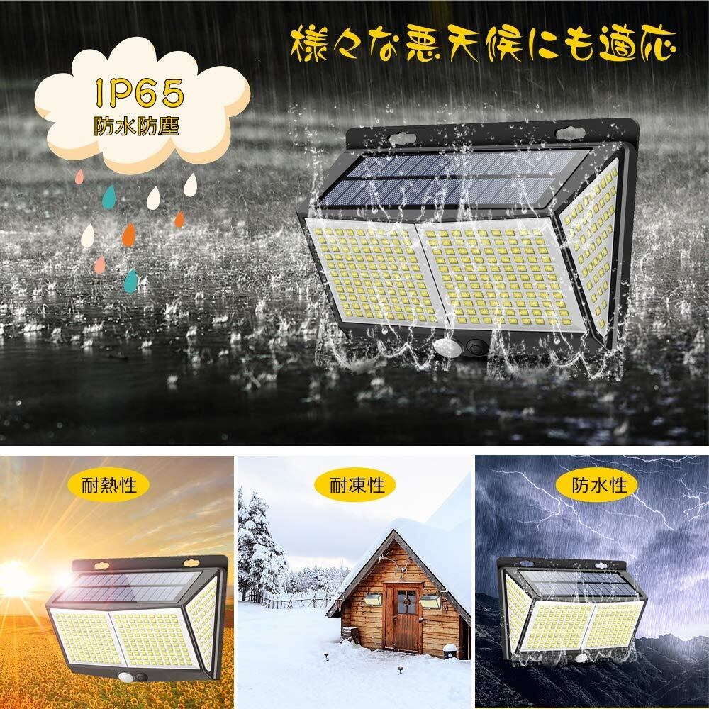 【最新版288LED・4面発光・2600mAh大容量電池】は数年センサーライト研究開発と技術革新に専念しており、今まで数万個を販売しました、お客様から様々な意見を聞いて、288LEDソーラーライト3つの知能モードを出品します。高輝度288個LEDチップが搭載、四面に同時照明可能、発光効率の高い上に、ワイドな幅が照射角度を保っており、照明範囲が普通の120°から300°に変更して、夜間照明の範囲を大幅に広くなり、防犯ライトとして、防犯効果も抜群です!また、内蔵2600mAh大容量充電池は大容量で、フル充電されたらより長い時間で使用できます。