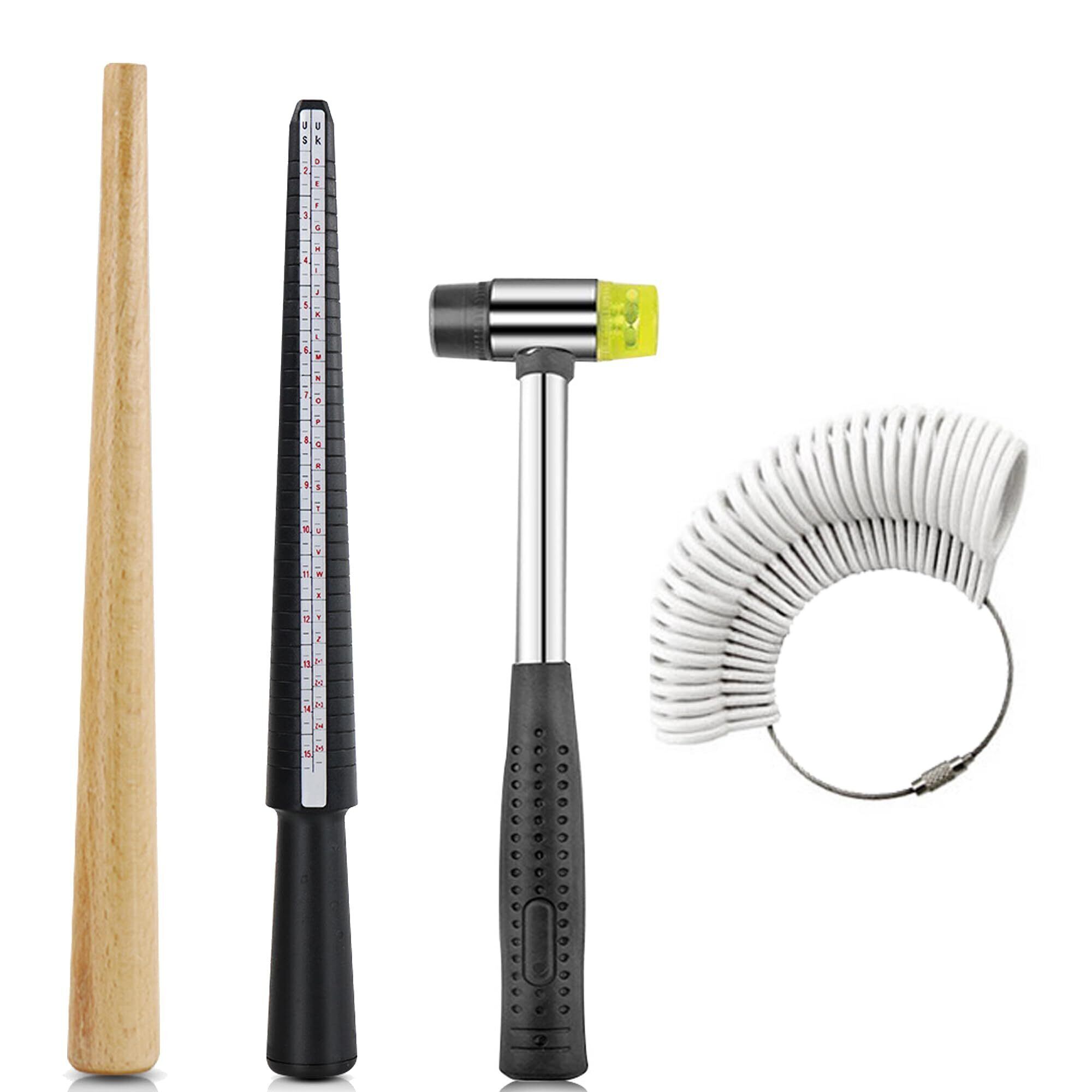 【在庫セール】JLPESEAES 指輪 サイズ 調整 スチール ジュエリー用 工具 コンビハンマー 補修ツール 3点 セット スチール ジュエリー用 工具 道具 プラチナ リングゲージ 便利な リング (4pcs) | SmartLiving+