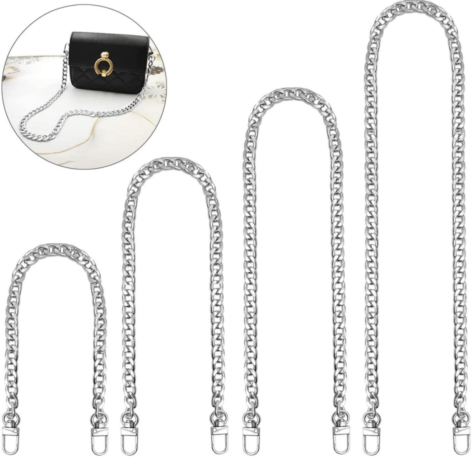 バッグチェーン 4本入り バッグ持ち手 ショルダーストラップ ハンドバッグチェーン フラットチェーン30/60/100/120cm (シルバー)