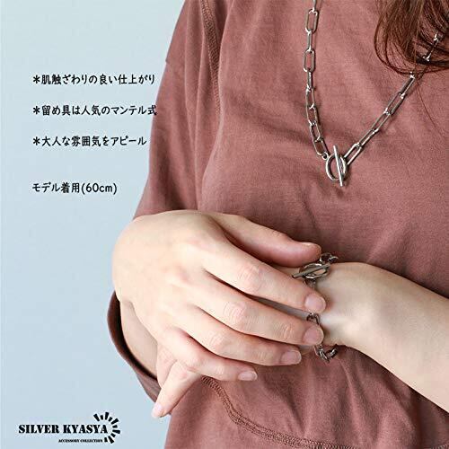 [silver KYASYA]ステンレス チェーンネックレス シルバー レディース マンテル Tバー シンプル 金属アレルギー対応 40cm 45cm 50cm 60cm