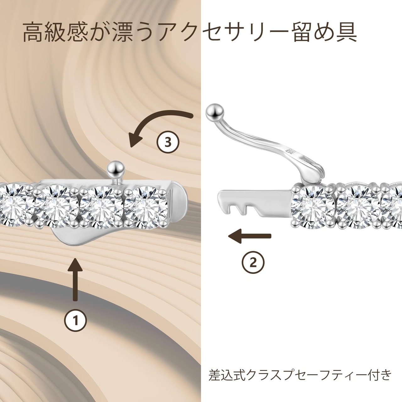 【手元を華やかに彩る】幅5mmの大粒CZダイヤストーンを贅沢に配置したラグジュアリーなテニスブレスレットです。ダブルロック式の留め具で紛失の心配のない設計。存在感がありながらシンプルなデザインで、男女問わず使えるのでペアアクセサリーとしても活躍してくれます。