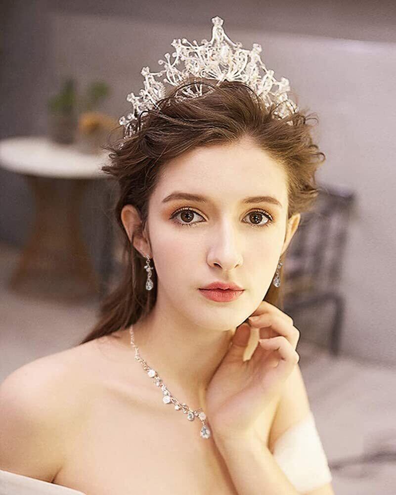 ティアラ ウエディング 髪飾り 王冠 クラウン crown ブライダル イヤリングとネックレス付き 花嫁 姫系 記念写真 アクセサリー ヘアアクセサリー 結婚式 披露宴 発表会 イベント パーティー