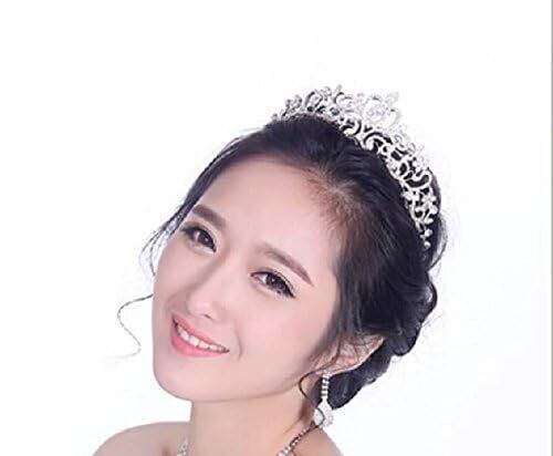 結婚式 ウェディング アクセサリー ティアラ 王冠 パール ラインストーン 花嫁 パーティー ブライダル シルバー (プリンセス)