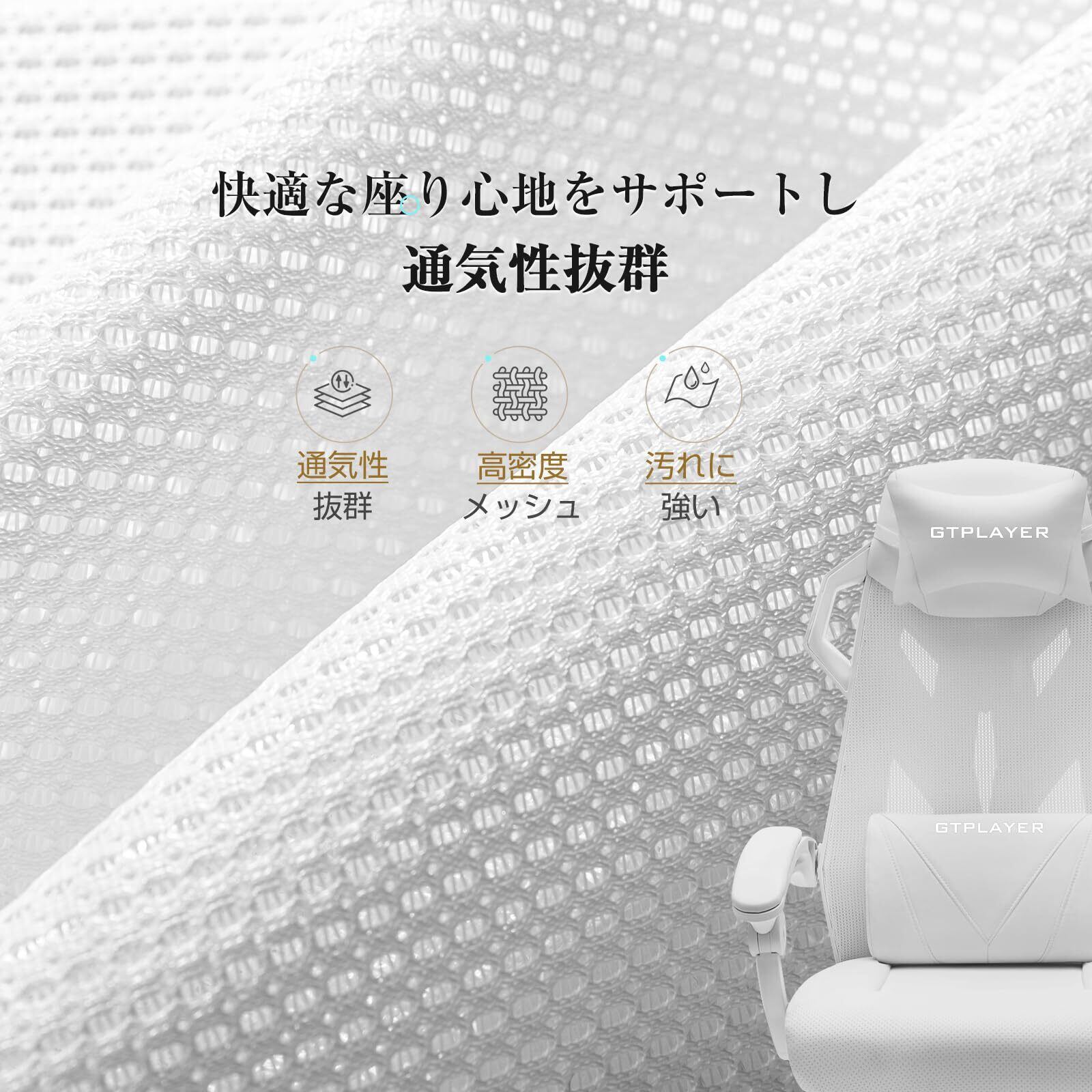 GTRacing ゲーミングチェア 真っ白 疲れない椅子 デスクチェア オフィスチェア オットマン付き ワークチェア リクライニング ハイバック イス『仕事用ゲーミングチェア』ゲーム用チェア フットレスト ハイバック/気孔付き皮革とメッシュ素材/連動型アームレスト (GTPLYERシリーズ Luft310- WHITE)