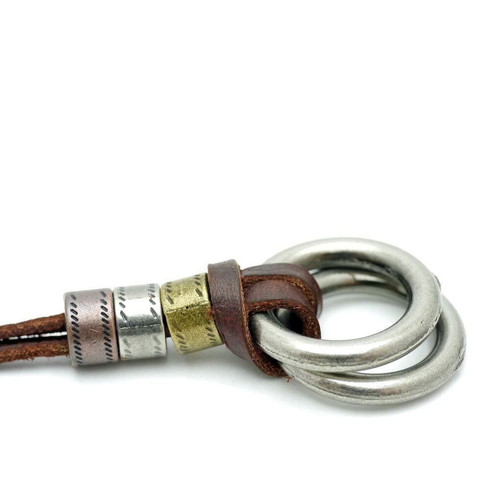 [シルバーワン] ko 2リング 平革レザー チョーカー ネックレス メンズ フリーサイズ ブラウン