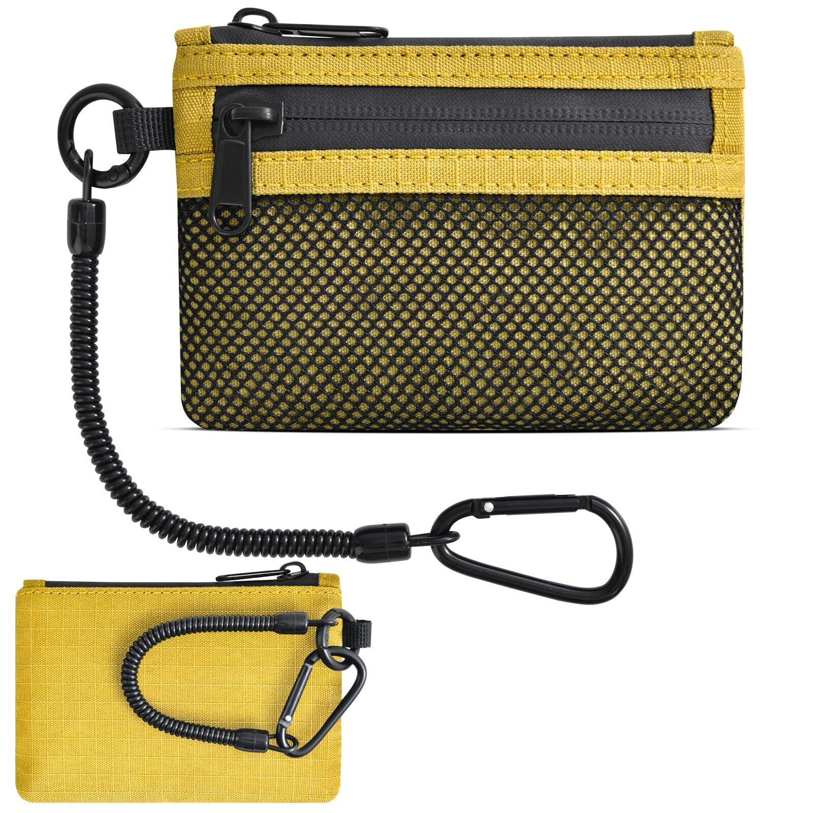 [UriCase] メンズ・レディース男女兼用 薄型防犯パスケース コイン・カード入れ付き ミニ 財布 スキミング防止 トラベルウォレット キーチェーン付き 海外旅行・アウトドア用 定期入れ 伸びる 落下防止(イエロー)