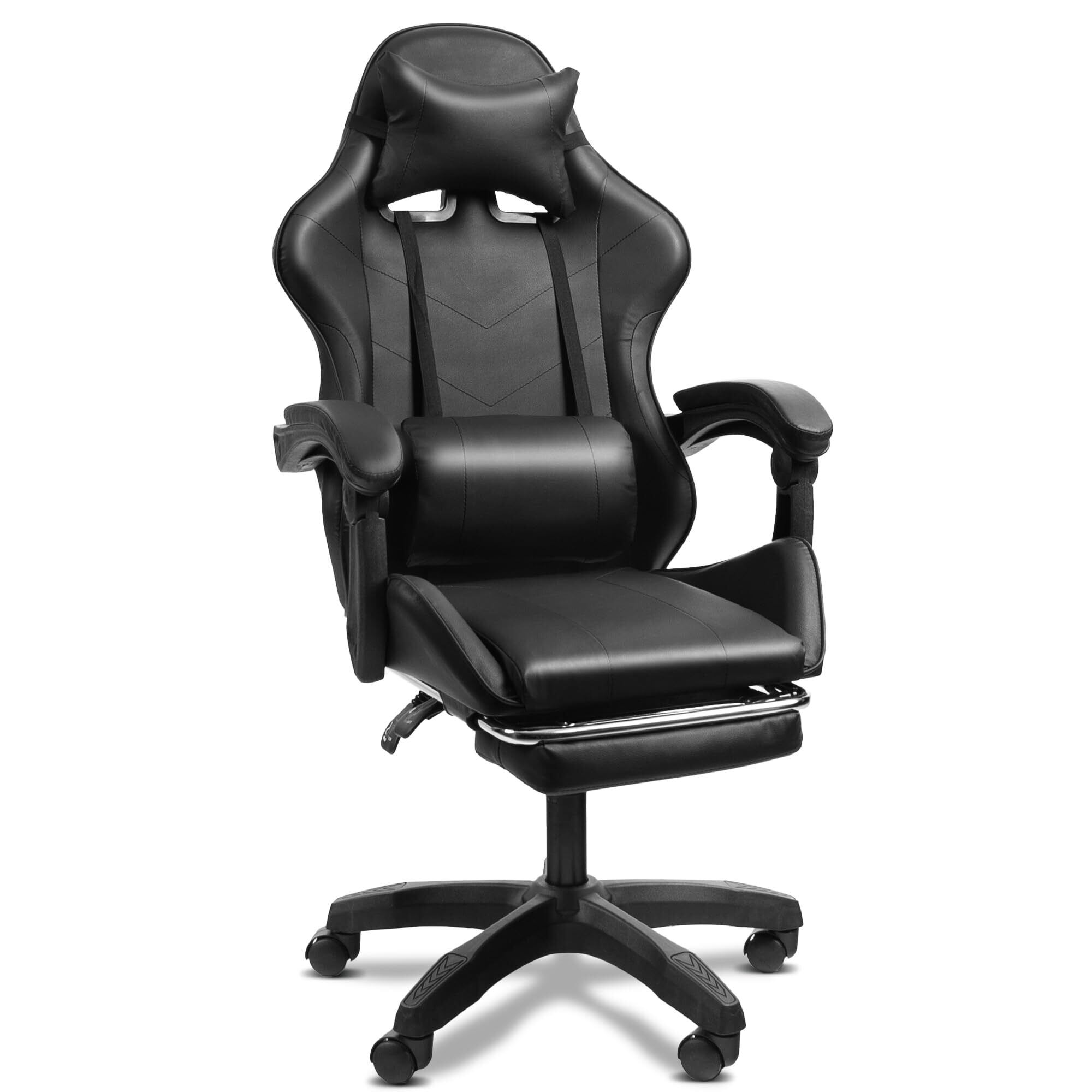 DoubleTT ゲーミングチェア ゲーム用チェア オフィスチェア デスクチェア パソコンチェア オットマン付き 人間工学 165度リクライニング機能 ハイバック テレワーク椅子 PCチェア (ブラック)