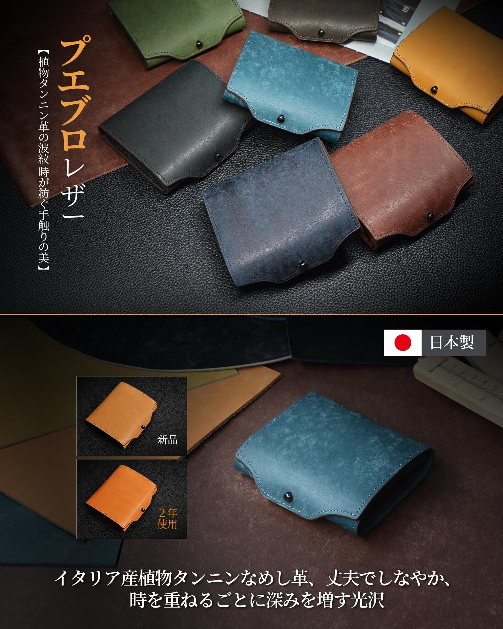 [ObiOri] 財布 メンズ プエブロレザー 本革 日本製 コンパクト 小さい ミニ財布 大容量 3つ折り 箱型の小銭入れ 箱状 左利き 右利き メンズ プレゼント (ブルー)