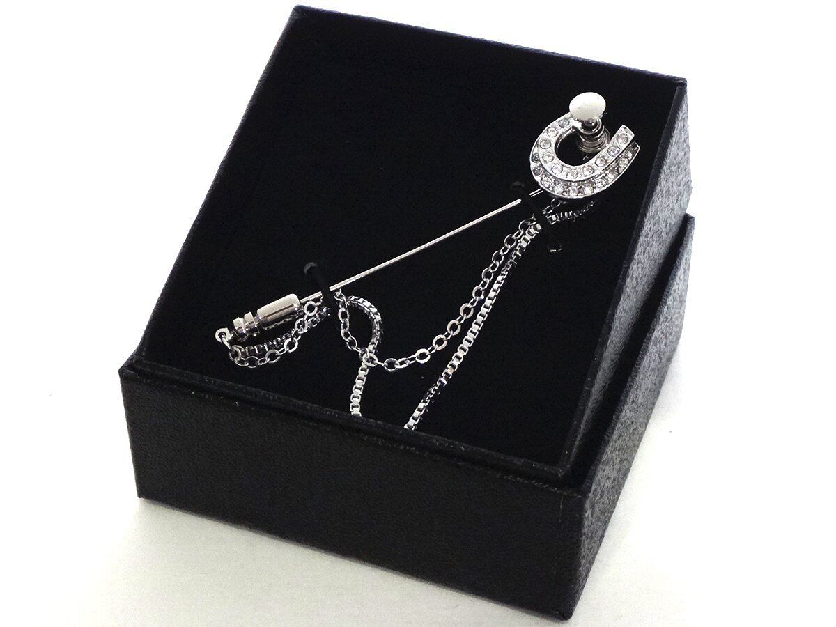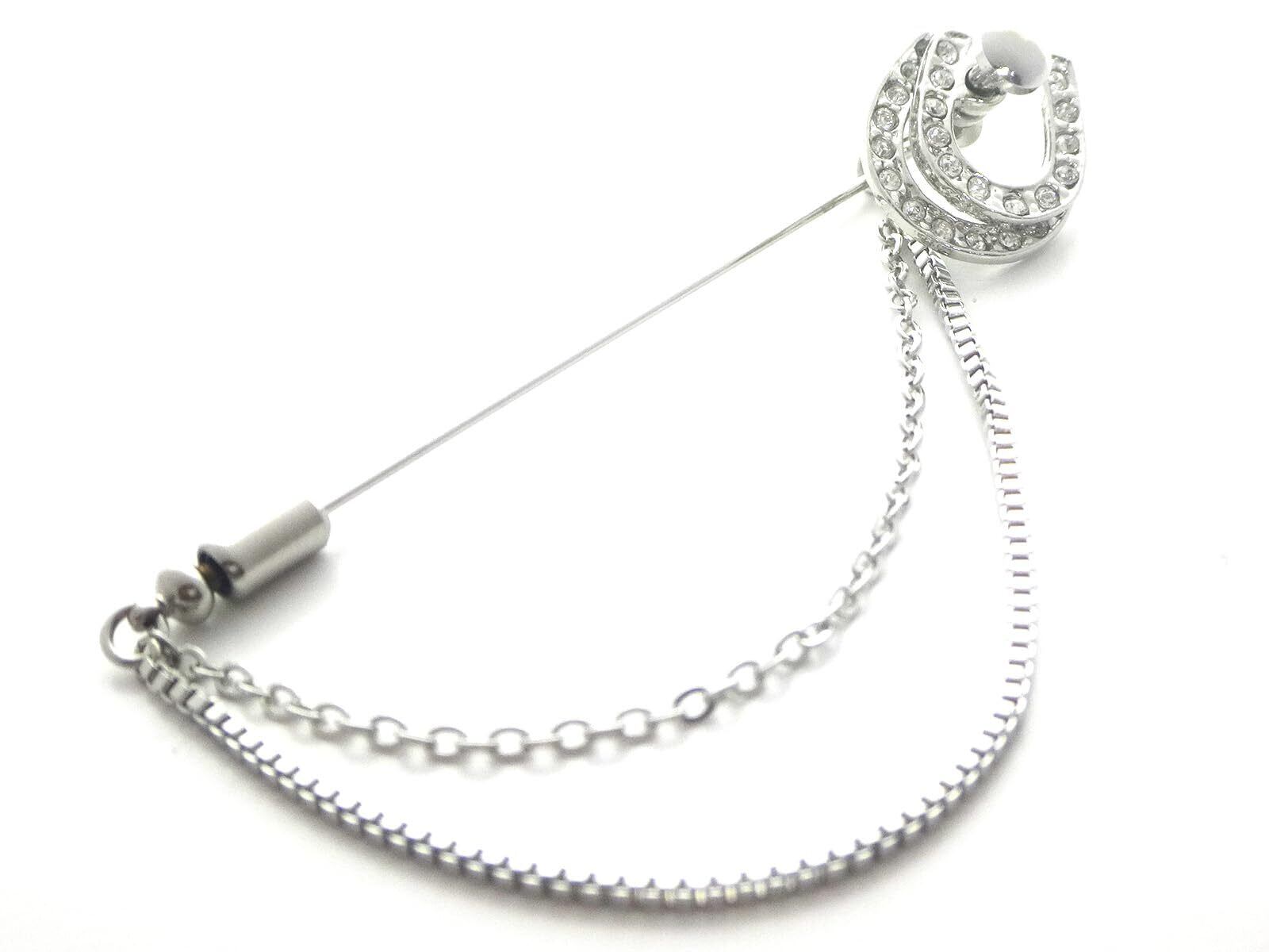 【特価セール】[サクセサリー] successory 日本製 2連チェーン付 ラペルピン ブローチ 馬蹄 ひづめ スイング スワロフスキー