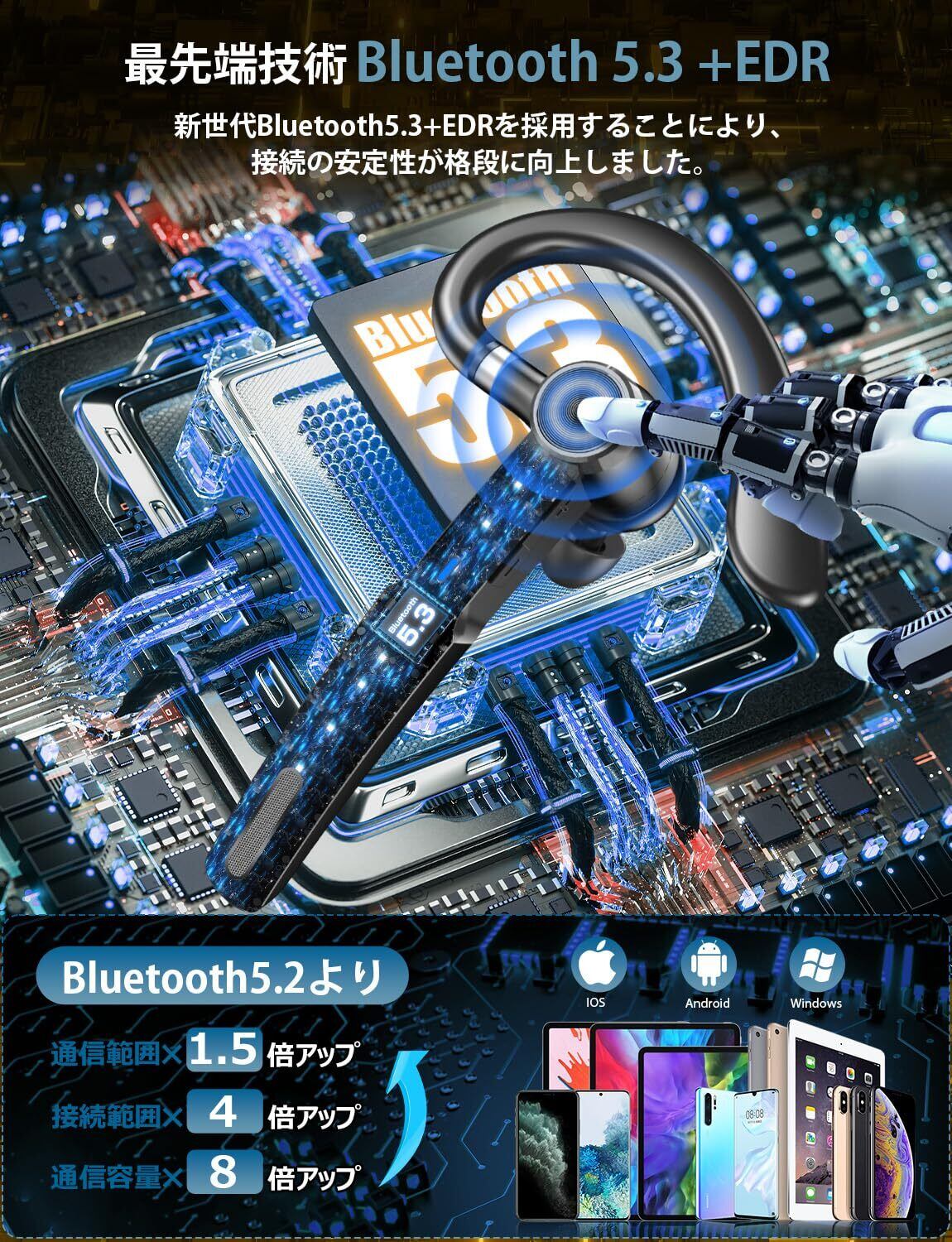 ✨\先端技術Bluetooth5.3搭載/業界最先端Bluetooth5.3技術を搭載されるため、従来より転送速度と通信の安定性が向上させたBluetoothヘッドセットです。安定したクリアな通話をスムーズにしています。片耳型なので、両耳を塞がず、通話しながらも周囲の状況を把握できます。【高性能CVC8.0ノイズキャン+抜群なACCノイキャンセリング機能】高音質AACコーデックに対応しており、市販のイヤホンと比べて音質劣化・遅延を軽減し、豊かな中低音から明瞭な高音までリアルに再現できます。 CVC8.0ノイズキャンセリング機能付き、マイク内蔵付き、通話中の雑音や周囲のノイズを抑制し、相手の声も聞き取りやすく快適な通話を実現します。(ご注意:本制品はノイズ低減イヤホンですが、すべての音を遮断するわけではありません。ノイズを減らすことは、環境のノイズを減らすだけです。人の声と豪風の音を完全に遮断することは不可能です。予めご了承ください。)