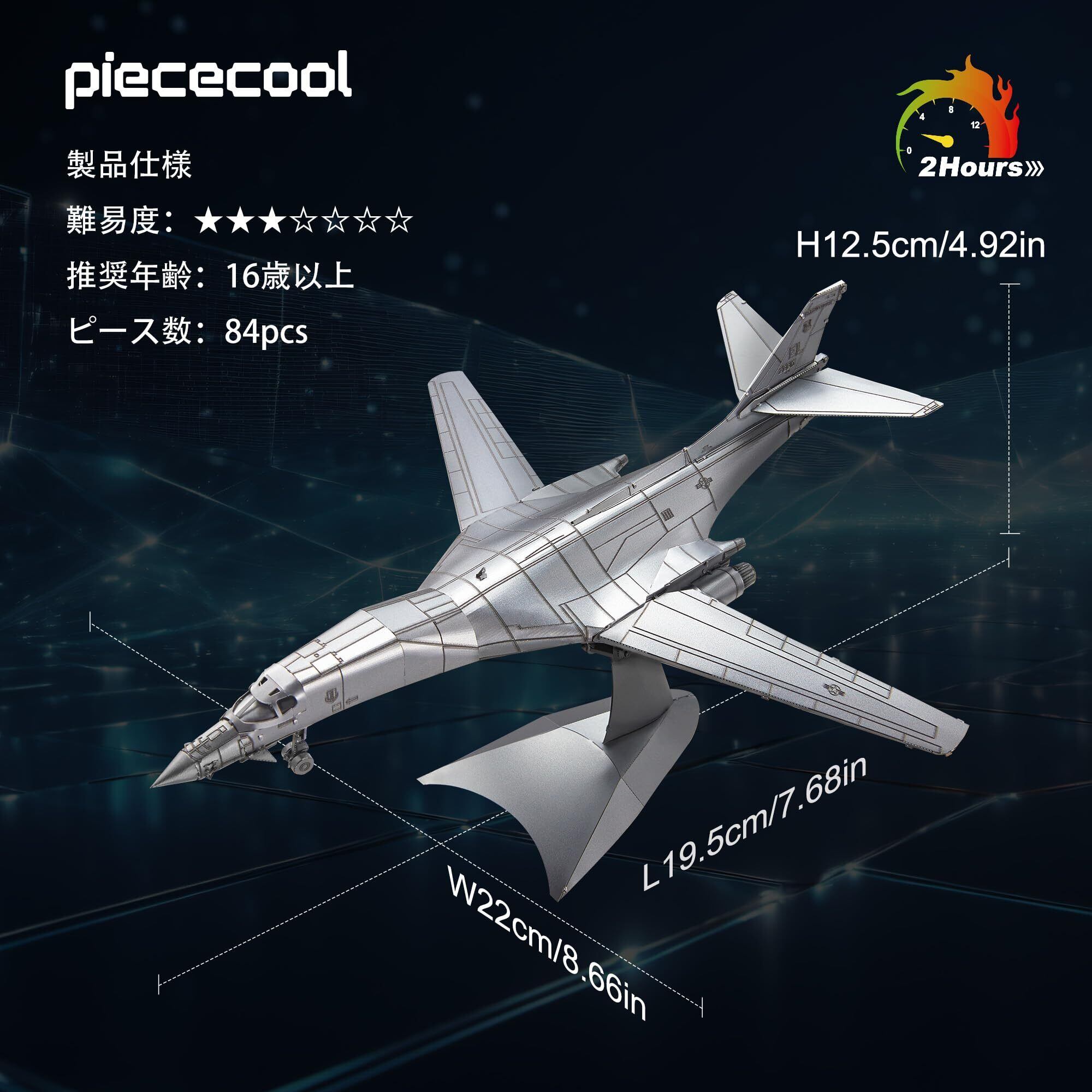 【極めて挑戦的な立体パズル体験!】「Piececool B-1ランサー」は、その精巧なデザインと金属製の高品質な素材が魅力の3Dパズルです。このパズルは、組み立ての過程を通じて思考力や集中力を極限まで引き出します。難易度3つ星の本商品は、熟練者向けのチャレンジとして、特に大人のコレクターに最適です。
