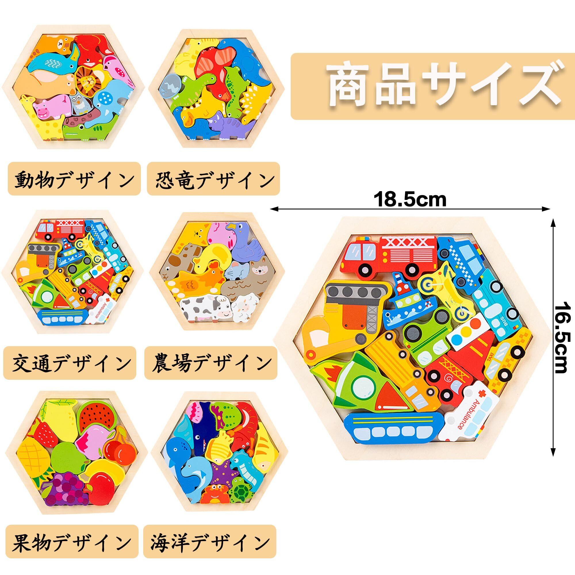DEVENTORZ 木製パズル 型はめパズル 形合わせ モンテッソーリ 六角形 教育おもちゃ 2 3 4 5 歳 幼児早期開発 色認知 脳トレ 手眼協調能力 おもちゃ 果物/恐竜/海洋/交通/動物 のパズル 女の子 男の子 子供 プレゼント 誕生日プレゼント(交通)