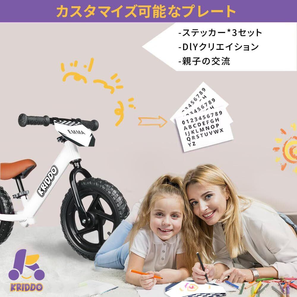 KRIDDO バランスバイク 幼児用 ペダルなし 自転車 24ヶ月〜5歳向け 12インチ キックバイク バランス 高い安定性 カスタマイズプレート付き(ステッカー3セット付属)2〜3歳 男の子・女の子用