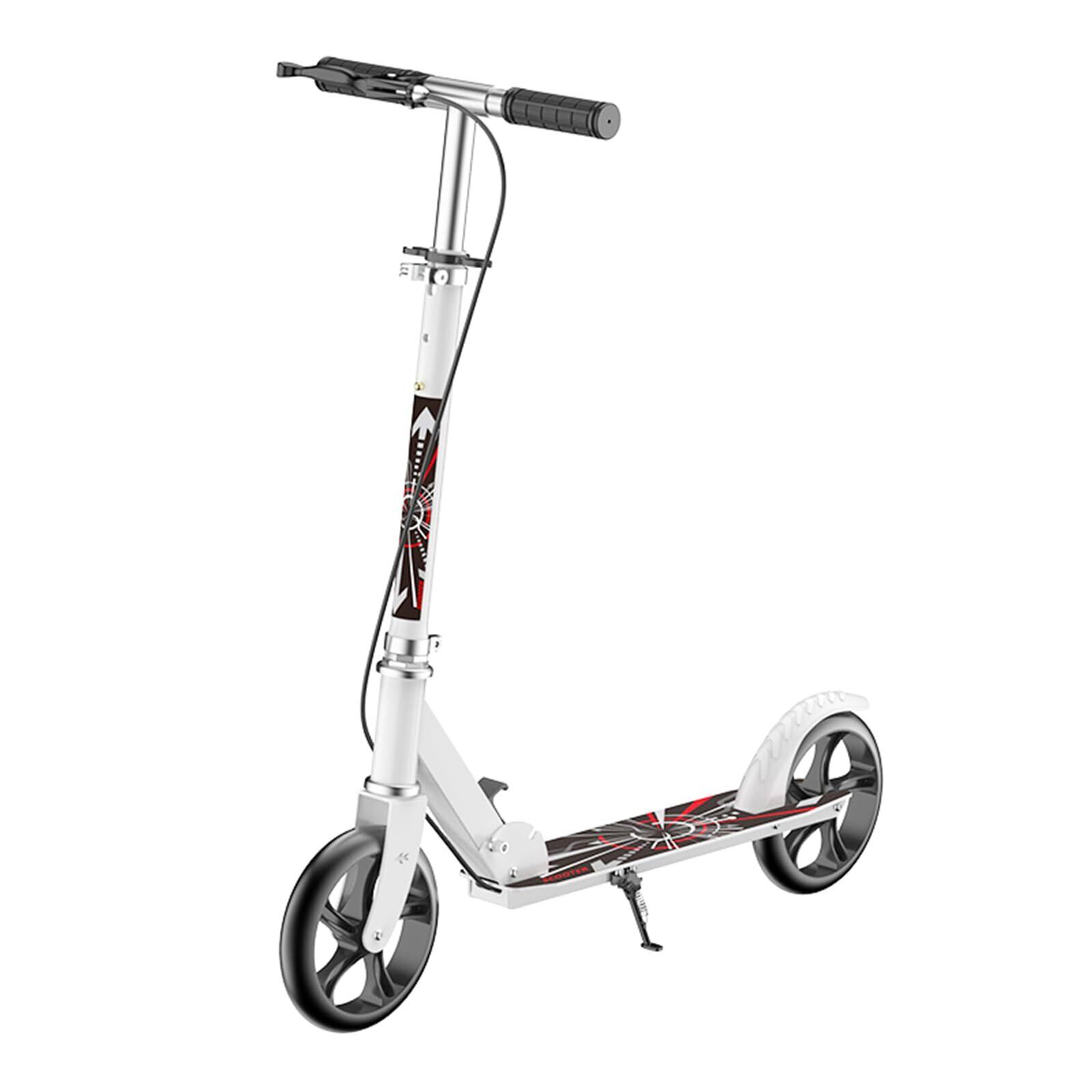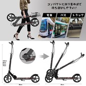 【高品質&安全性UP】本体は軽量で頑丈なアルミボディを採用。デッキ面が滑り止め加工を施したことで、安心で快適な滑りをサポートします。身長の大きな方でも安定する大幅のデッキと、大人の手でも握りやすい長さとグリップ性が強いラバーグリップで乗り心地に特化した、移動に便利なキックボードです。