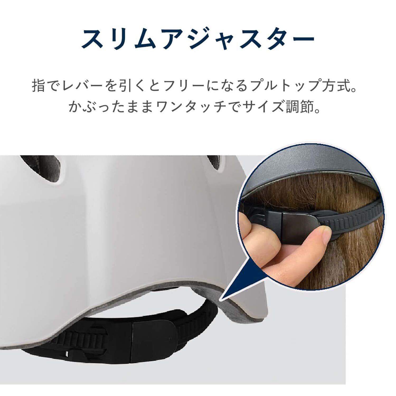 前後方に通気孔を備えており、走行中に風が通ることでヘルメット内の蒸れを防止します。女子には嬉しいヘアポケットも付いており、束ねた髪もすっぽり収まります。