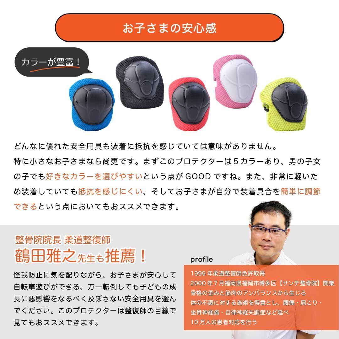 【整骨院院長推薦】自転車などの練習時にお子様のひじ、ヒザ、手の平を転倒時の怪我からしっかりガードするお子様用プロテクター6点セットです。