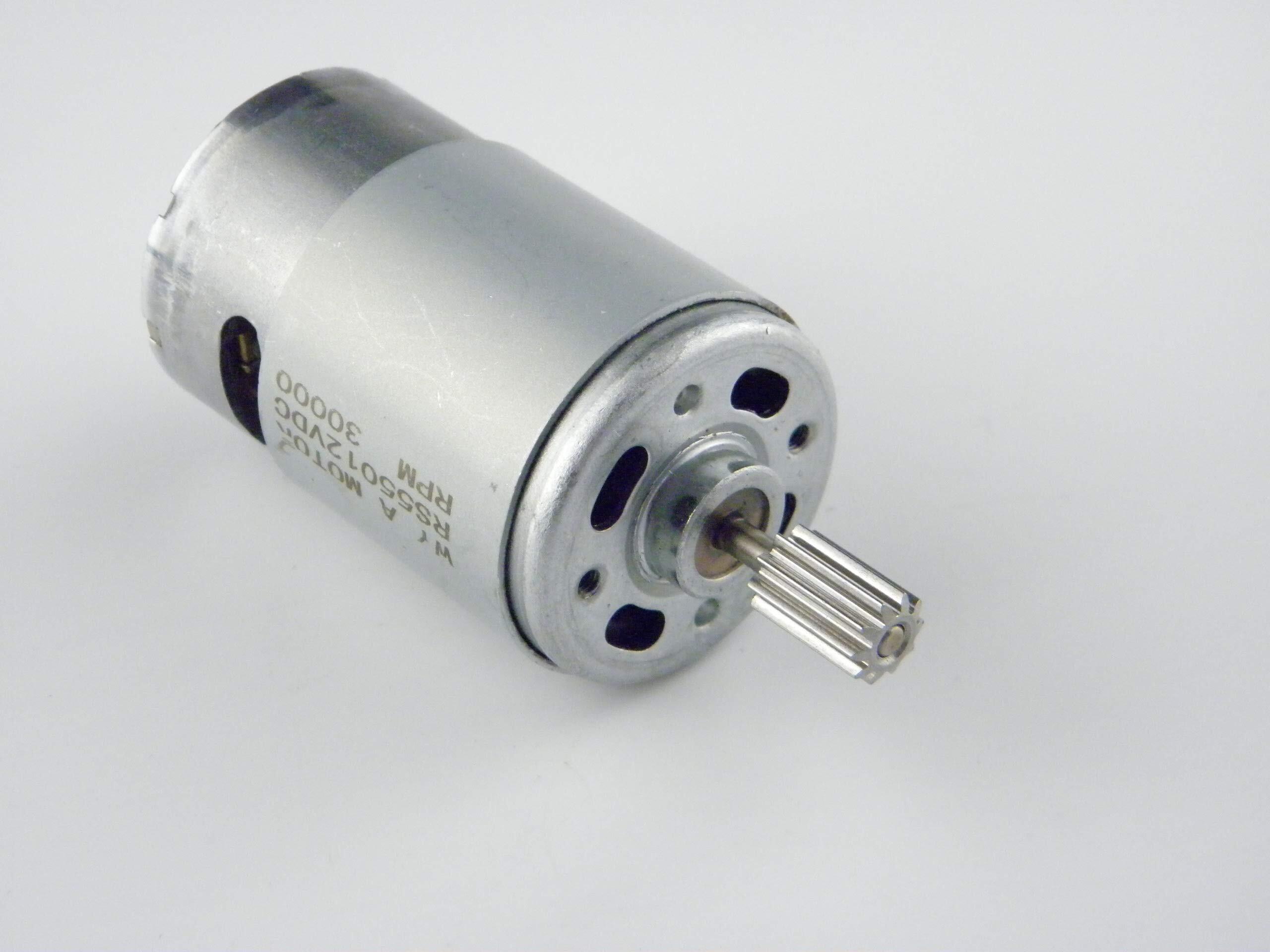 *550 DC 12Vモーターです。直径8.5mm、10歯ギア、直径10mm、10歯ギア、無ハンダモーターケーブルが付属しています。