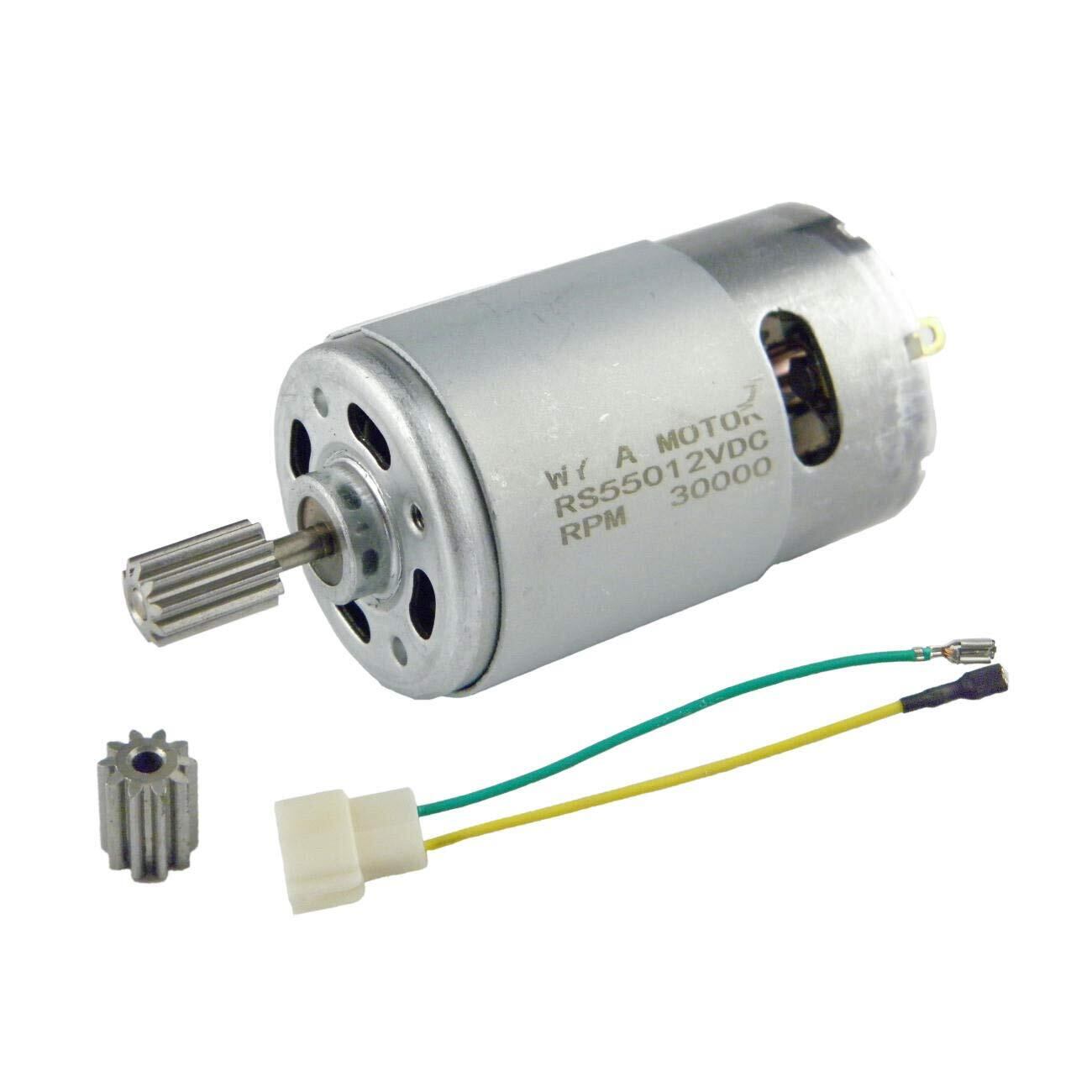 これは550DC 12Vモーターです。低ノイズ、堅牢な品質、おもちゃに乗る子供に適しています。モーターシャフトには、直径8.5mm、10歯のギア、直径10mm、10歯のギア、および無はんだモーターが付属しています。 ケーブルは無料で提供されます。