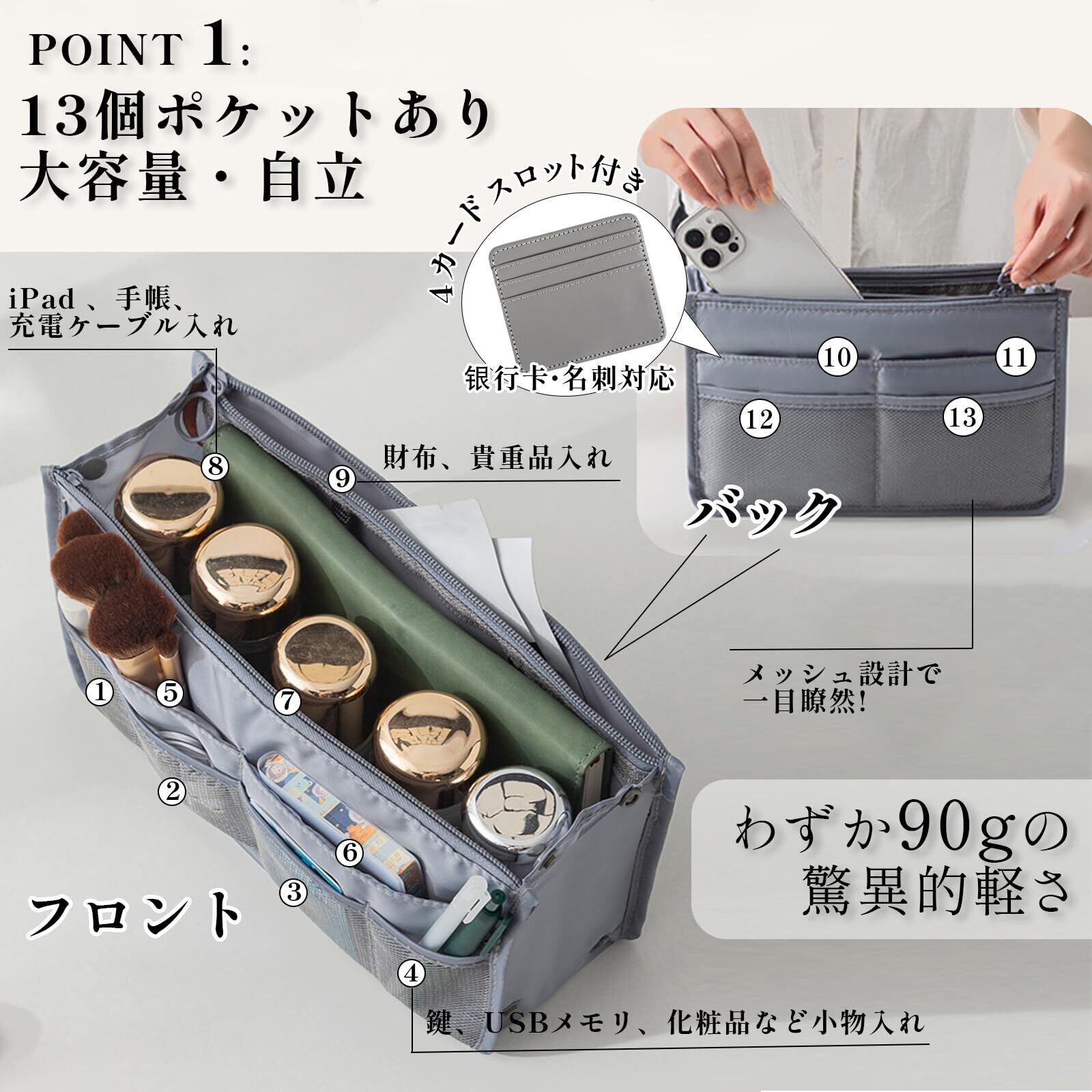 自立型バッグインバッグ|超軽量90g・13ポケット収納・カードホルダー付属