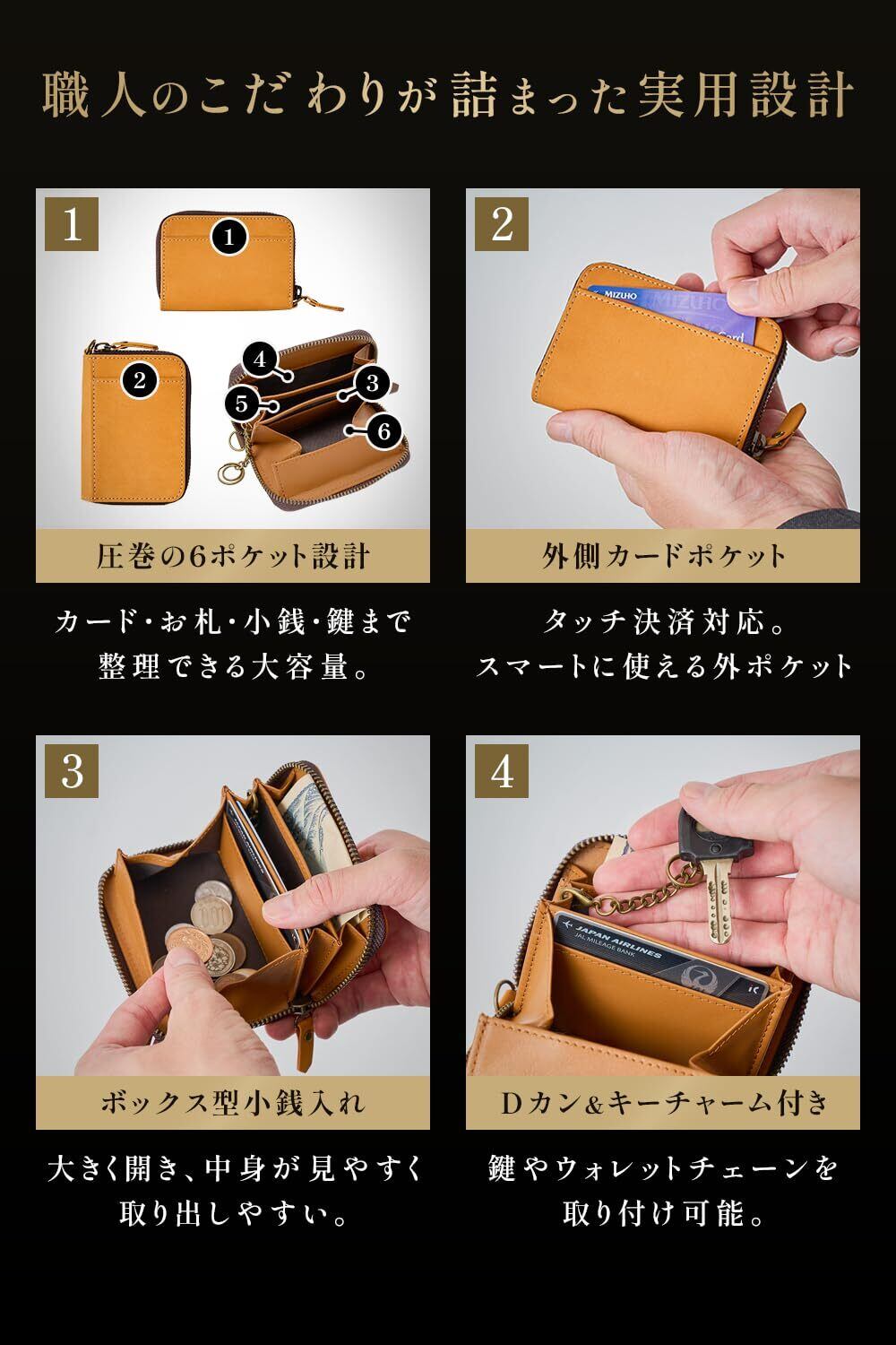 ■【コンパクトながら大容量】亀登鞄製作所のミニ財布は、コンパクトなサイズながら、ポケットに収まる程の大容量を持っています。小銭、紙幣、カード、鍵を全て一緒に収納できる便利な設計が魅力です!