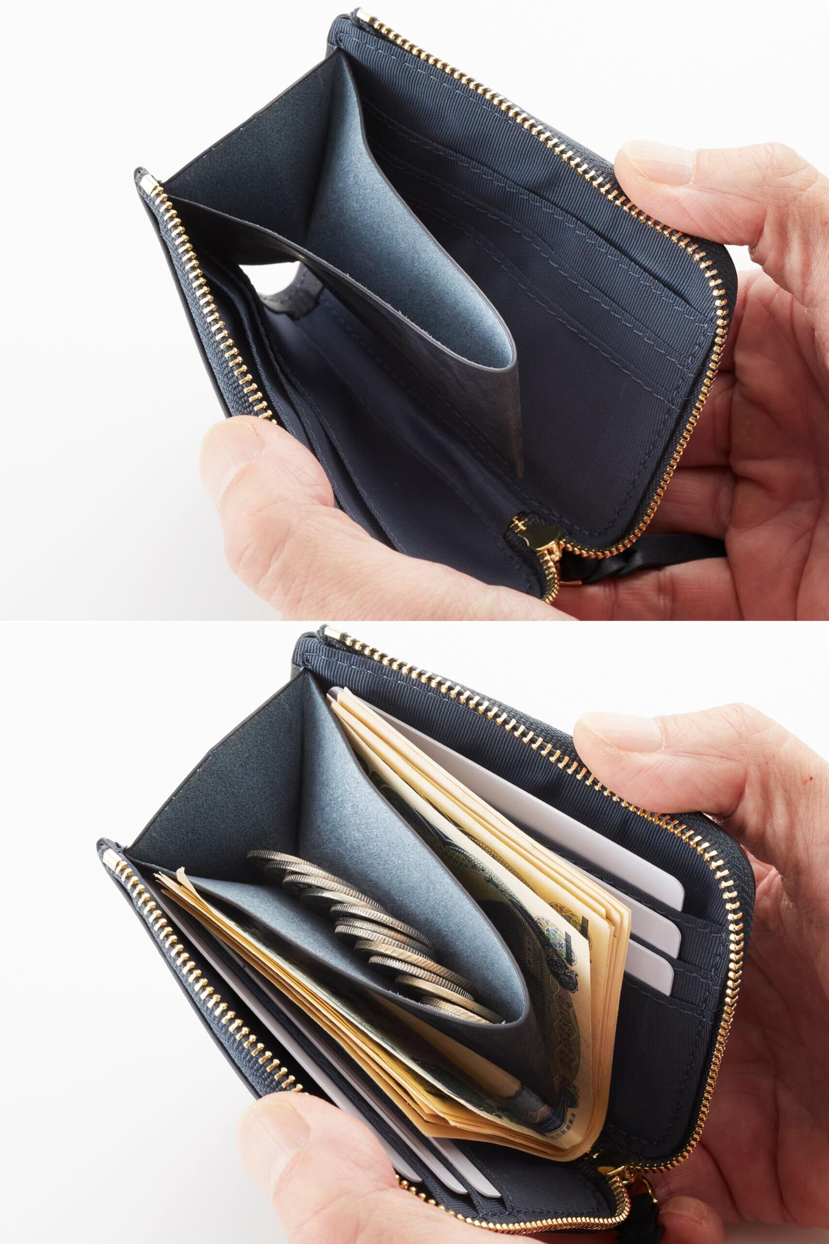 ■【コンパクトなのに優れた収納力】L字ファスナー式のデザインにより、小銭、カード、お札をしっかり収納できます。手のひらに収まるサイズながら、日常使いや旅行時にも活躍する収納力を誇ります。必要なものが一目で取り出せるため、スマートな会計を助けます!