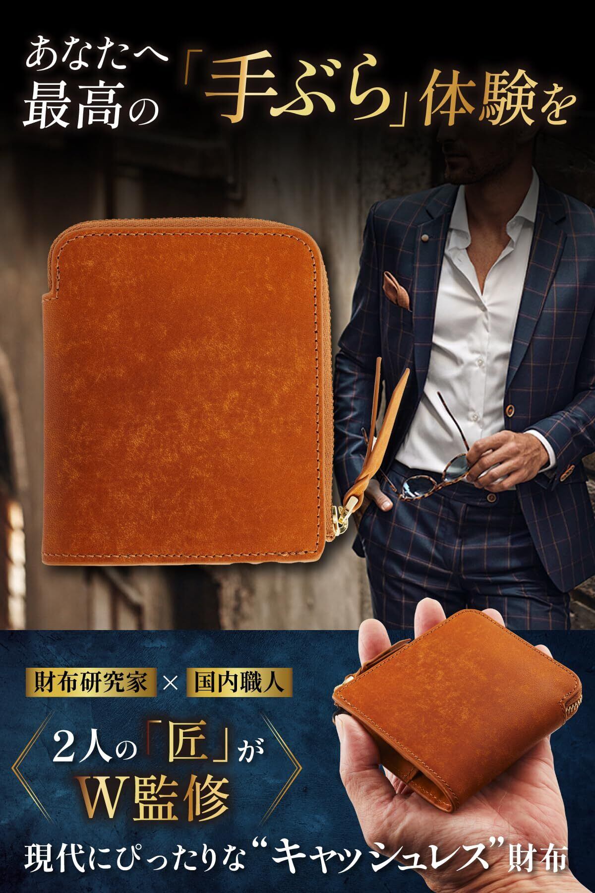 コインケース 本革 財布 メンズ コンパクト 二つ折り【500人に選ばれたL字ファスナー財布】イタリアンレザー 小銭入れ カード お札 YKKファスナー ミニマルウォレット (キャメル)