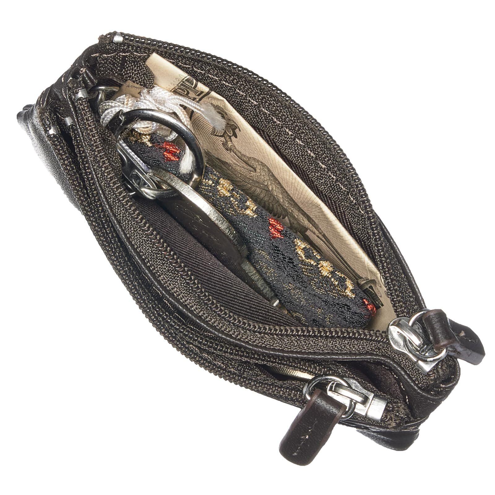 【収納構造】2つのファスナーポケットと中央スペースで、硬貨・紙幣・鍵をすっきり収納 ・段差ファスナー:前後のポケットに段差をつけた設計で、スムーズに開閉しやすい構造 ・キーリング付き:内側にリング金具付きで、鍵や小物の持ち運びにも対応