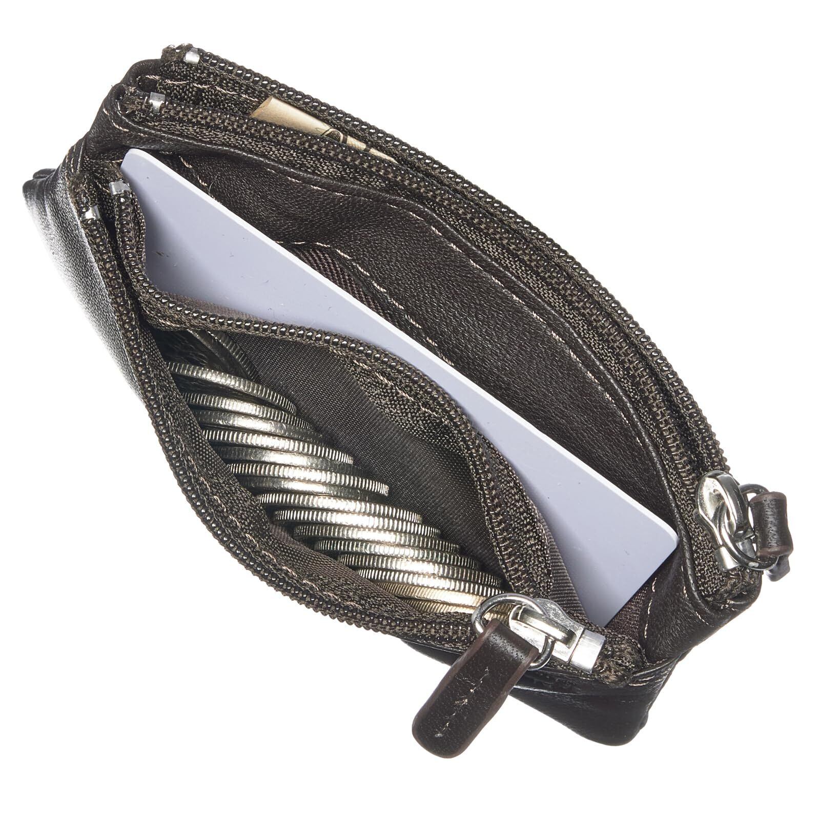 【人気商品】超軽量 僅か25g メンズ ラム革 2段 ファスナー 小銭入 カードポケット キーリング 付 Brown