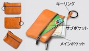 鍵の収納やキーホルダーの取り付けに便利なキーリング。耐久性がありスムーズな動きのメタルファスナーを使用。 コンパクトながらもコイン以外にカードや折りたたんだお札も収納できます。