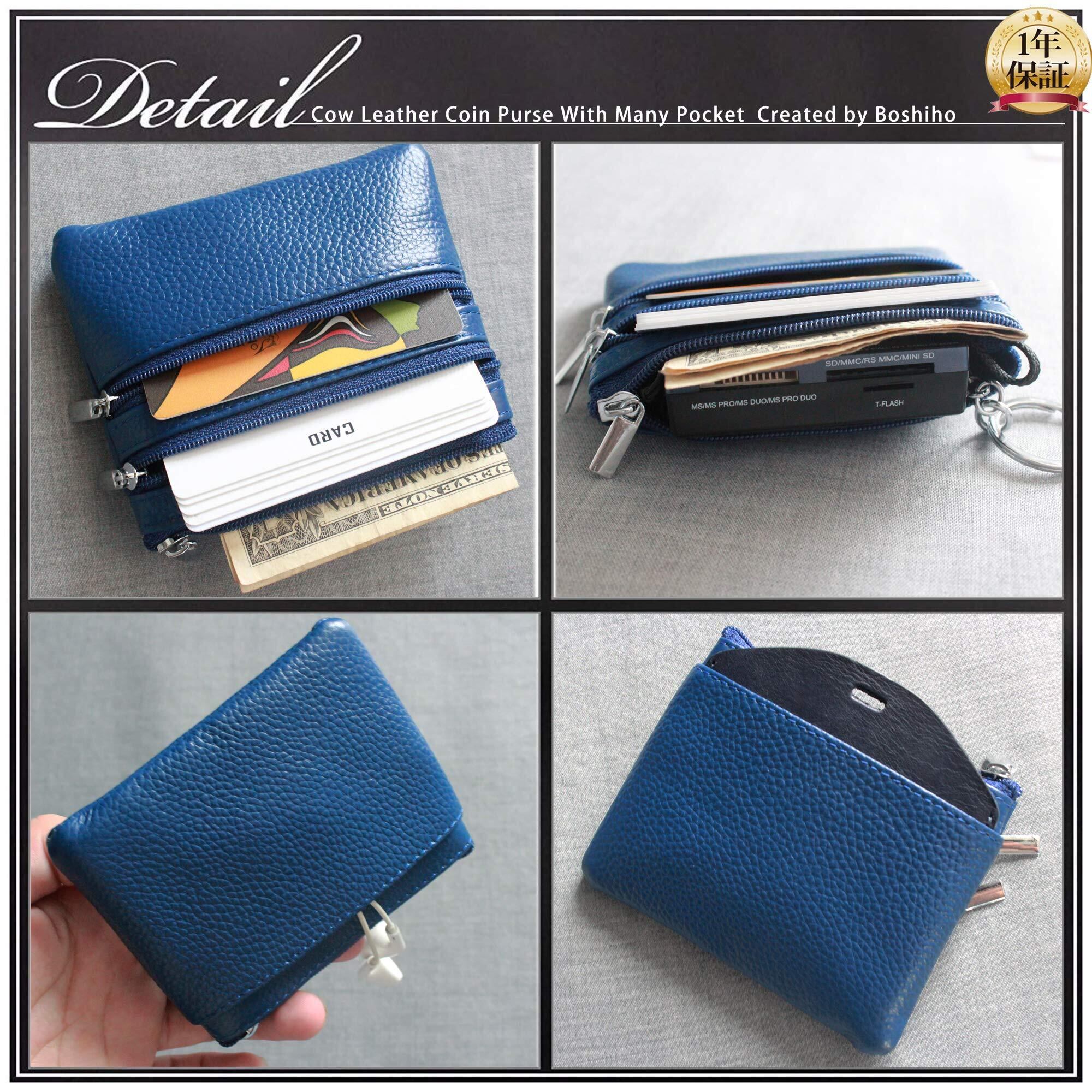 boshiho 小銭入れ コインケース 4ポケット キーリング付き 革 メンズ レディース 財布 超軽量 大容量
