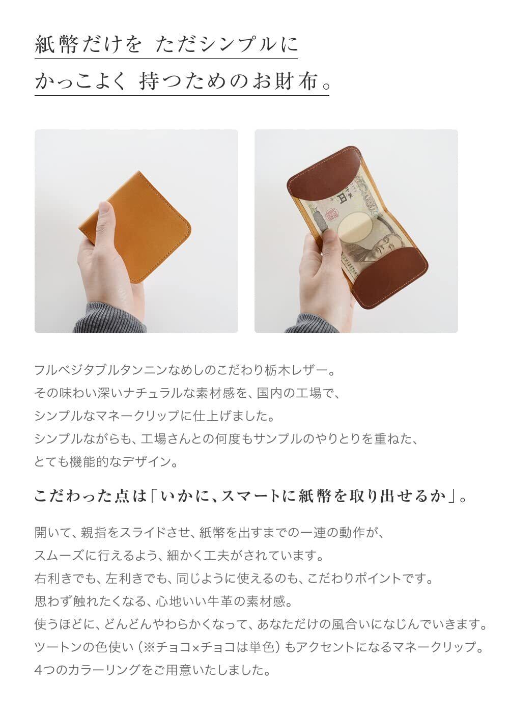 [ベルト専門店ベルトラボ] マネークリップ 札入れ メンズ 薄型 小銭入れなし 財布 革 栃木レザー 2つ折り 日本製 レディース ハンドメイド シンプル レザー 本革 牛革 pot(ポット) BLPT0050 (ブラウン×チョコ)