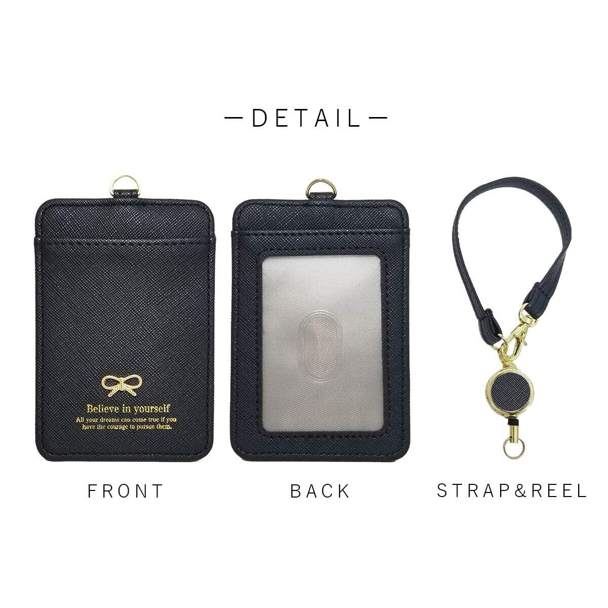 [ジゼル] パスケース 定期入れ リール付き レディース 両面 icカードケース 社員証 カードケース ストラップ付 リボン