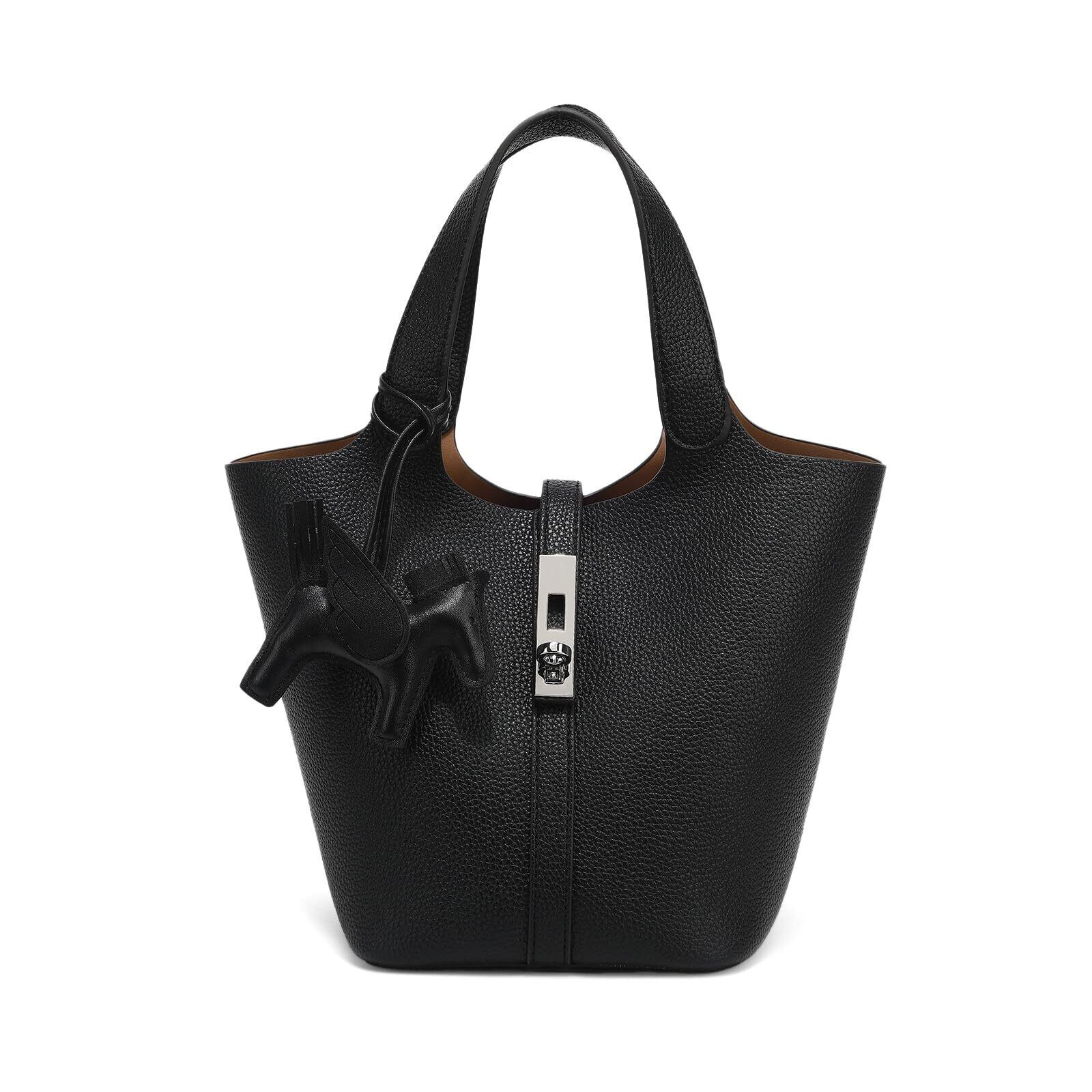 【在庫セール】ハンドバッグ レディース レザー トートバッグ 大容量 軽量 通勤 おしゃれ 人気 高見え シンプル 可愛い 小さめ 柔らかい 自立 内ポケット付き チャーム付属