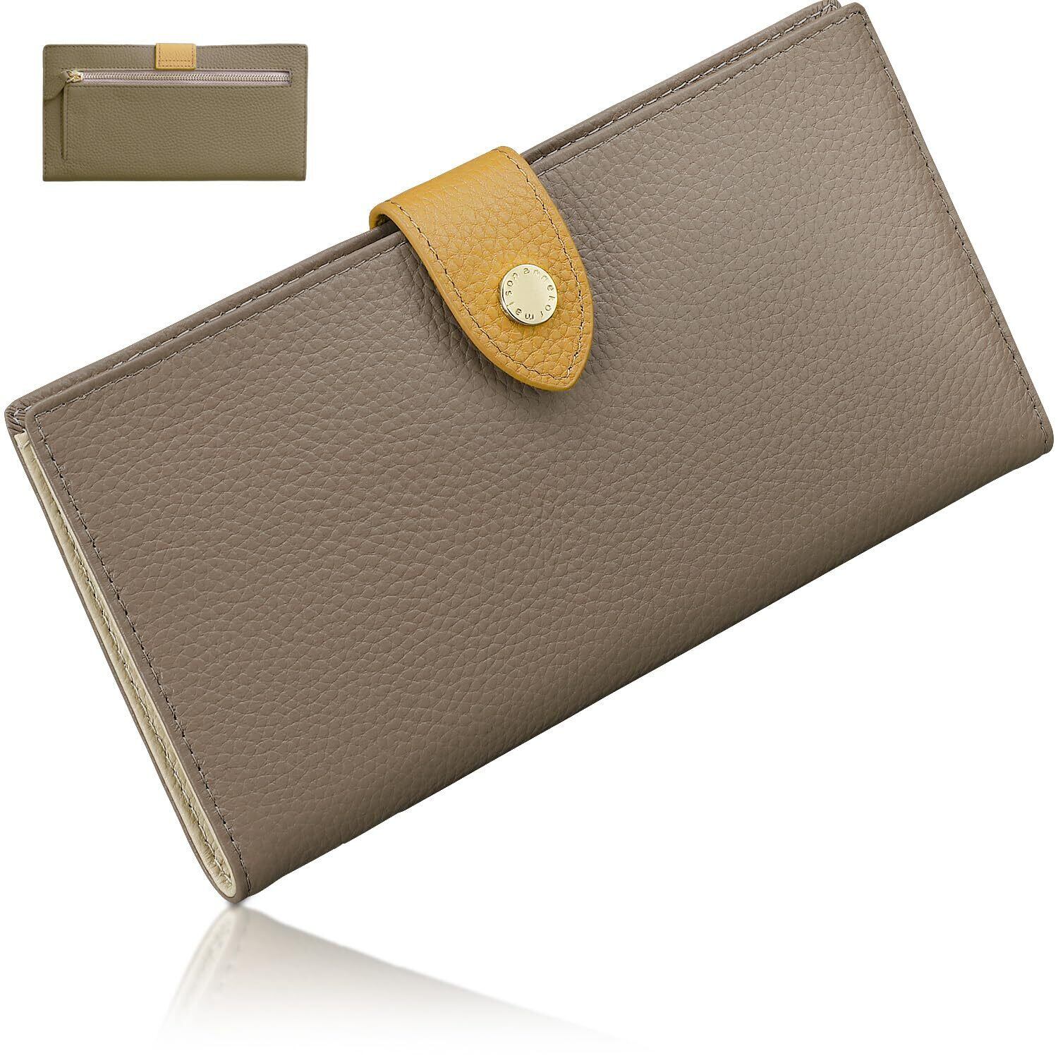 【数量限定】[アンコール] 長財布 【 極薄 7mm】 薄型 財布 レディース 本革 薄い 軽い スリム コンパクト 小銭入れ キャッシュレス レザー ウォレット スキミング防止 RFID ギフト (トープ×イエロー)
