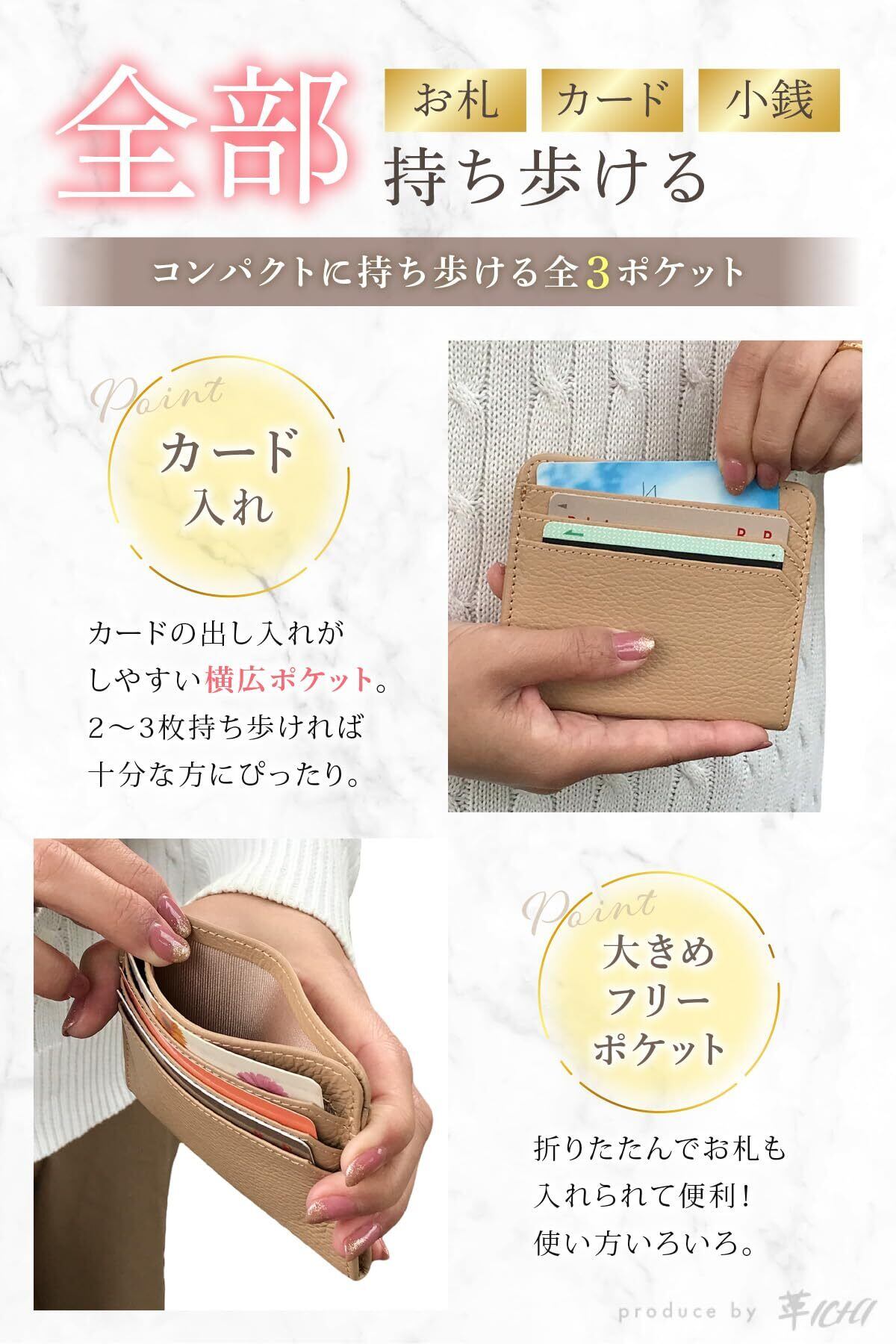 【ミニマル好き300人の声から生まれた仕様】アンケートから聞こえてきた様々な声「最低限のお札、カード(免許証、定期券、社員証等)、小銭をコンパクトに持ち歩きたい」「かさばらないミニ財布」「小銭が見やすい財布」「お財布迷子にならないカラーがいい」など。そこで小銭が見やすく取り出しやすい、BOX型コインケース付きなのに薄さわずか1.2cmとかさばらず、お札・カードも入ってフリーポケットもある優秀コンパクトなミニウォレットを開発!皆さんの声をふんだんに盛り込んだこだわりのミニ財布ができました。