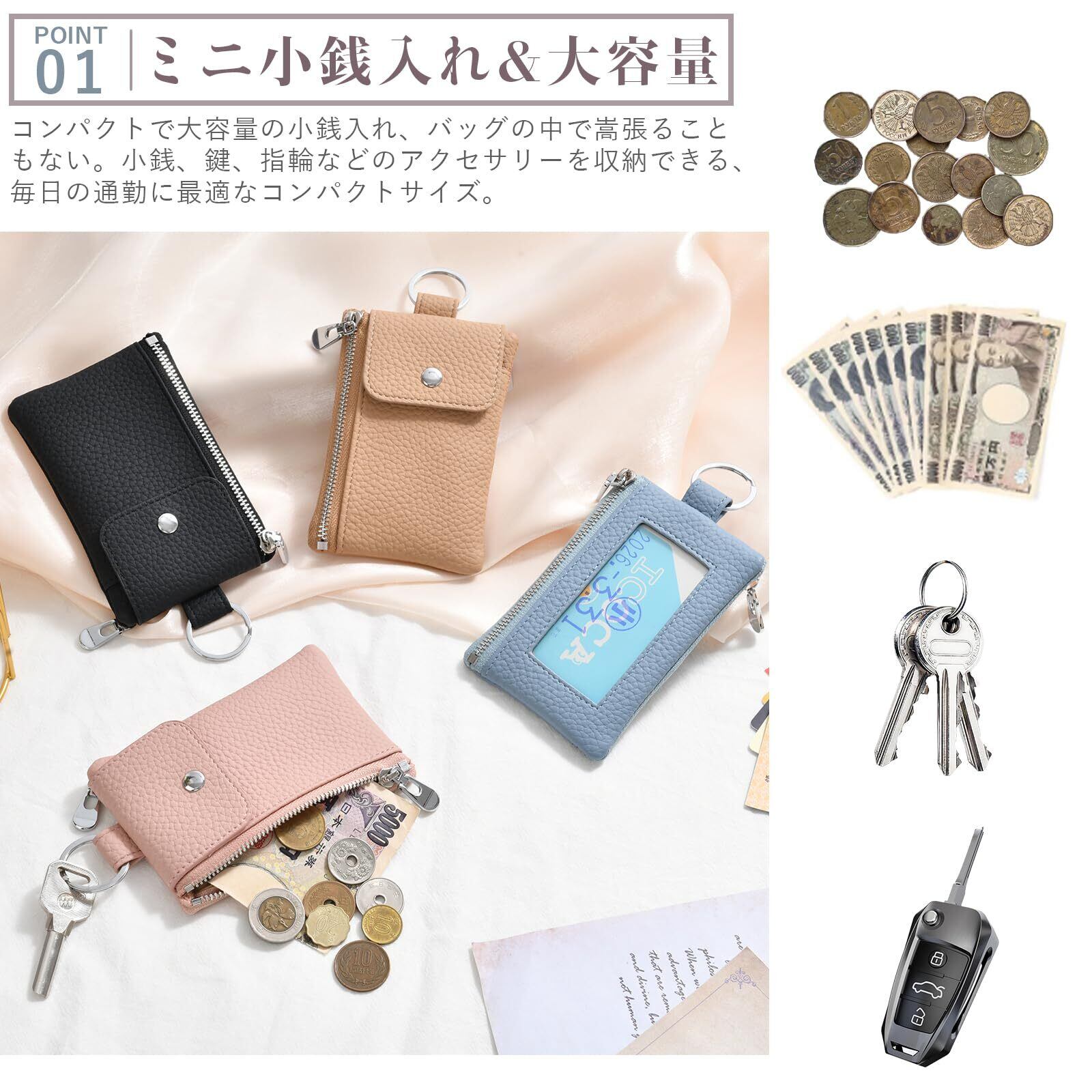 【高品質・多機能小銭入れ】ファスナーポケットの内側には仕切りがあり、社員証、学生証、会員証、保険証、定期カード、セキュリティカードなどを収納できます。小銭入れの超大容量で、カード、名刺、名札、紙幣、小銭入れなど多用途に使えます。
