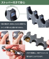 小銭の管理はこれひとつでOK!片手でコインを取り出せるスリム・軽量・便利なコインホルダー。コインの種類によって収納場所が決まっているので、支払い時に欲しいコインがサッと取り出せます。