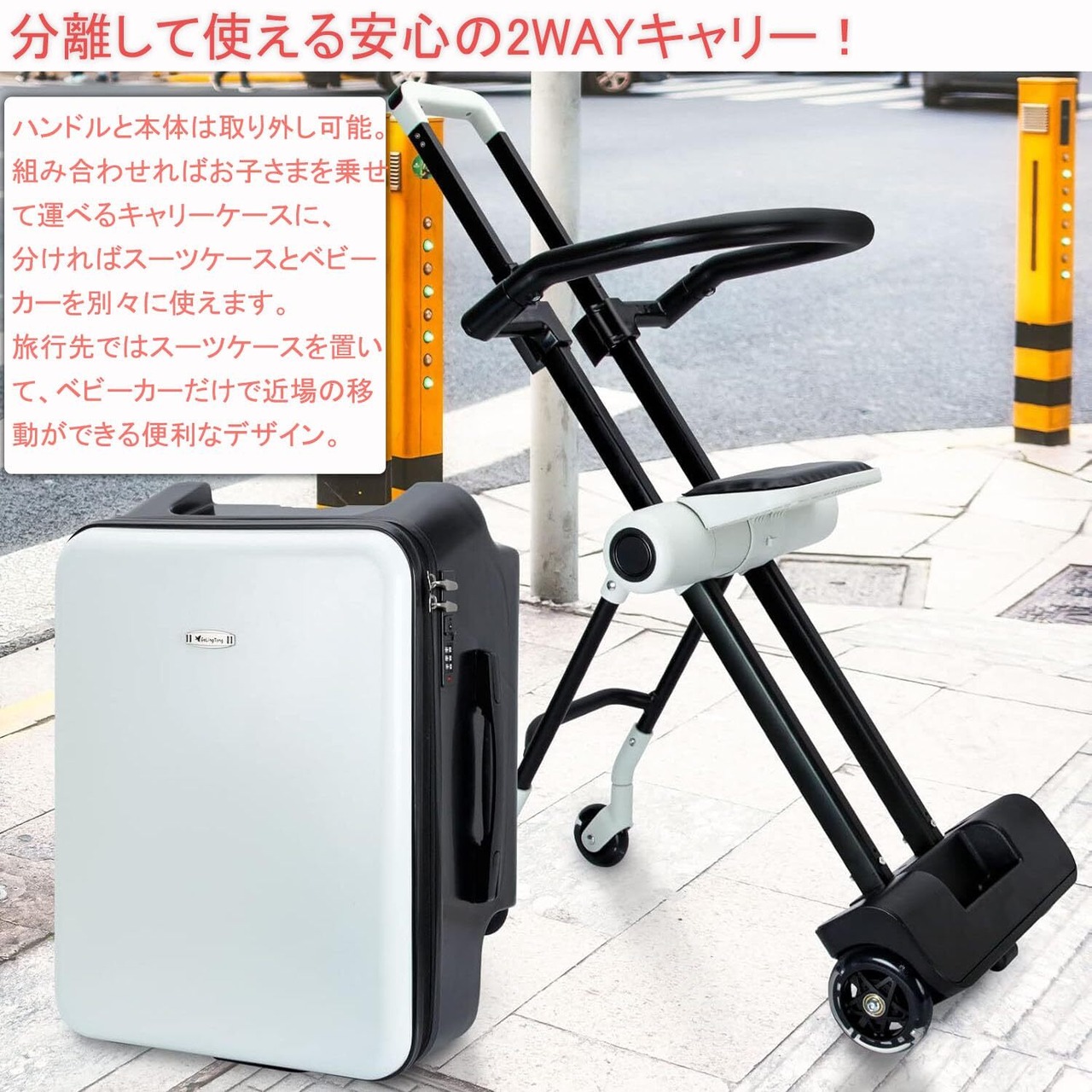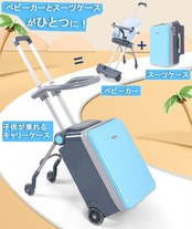【ベビーカーとスーツケースがひとつに!】ベビーカーとスーツケースがひとつになった便利なキャリーケース。荷物を収納できるだけでなく、椅子やベビーカーの代わりとしても利用可能。わざわざベビーカーの持つが不要で、荷物が減る。 お子さまを乗せたままスムーズに移動できるので、抱っこの負担を大幅に軽減。旅行やお出かけを、親子にとってより快適で楽しいひとときに変えてくれます。
