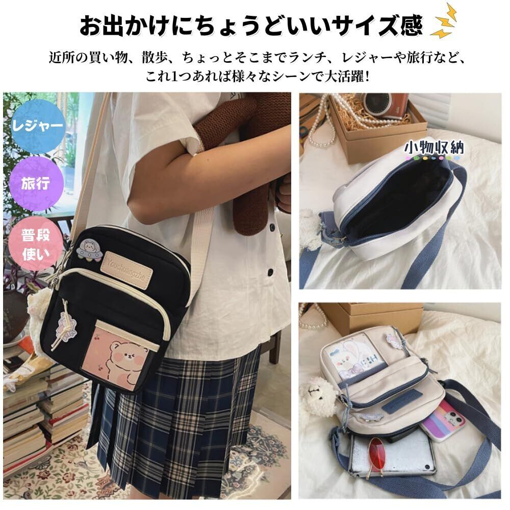 [ENJHIKE] ショルダーバッグ 小さめ ポシェット スマホポーチ ミニバッグ 子供 キッズ 学生 女の子 お出かけ 可愛い 撥水 軽量 斜め掛け 調節可能 シンプル アイボリー ブラック ピンク ブルー 縦型