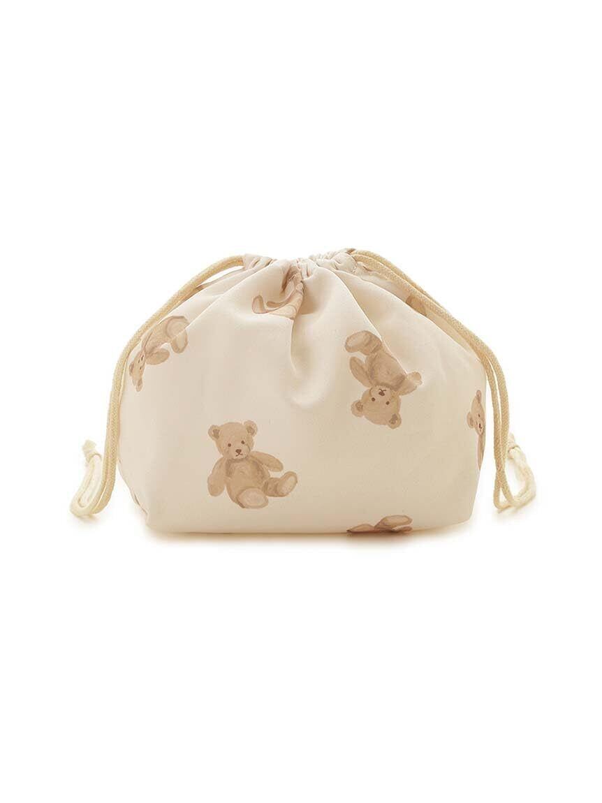 手描きタッチのベア柄とイチゴ柄から選べる、春の新生活に向けたKIDSのためのバッグシリーズです。この春から入園・入学や新学年を迎えるKIDSにおすすめしたいMサイズの巾着袋。2段のお弁当箱やカトラリーがすっきりと入るサイズ感です。色はベア柄のアイボリーと、イチゴ柄のピンクの2色。同シリーズのバッグ類やハットなどとコーディネートしたり、ギフトにもおすすめのアイテムです。