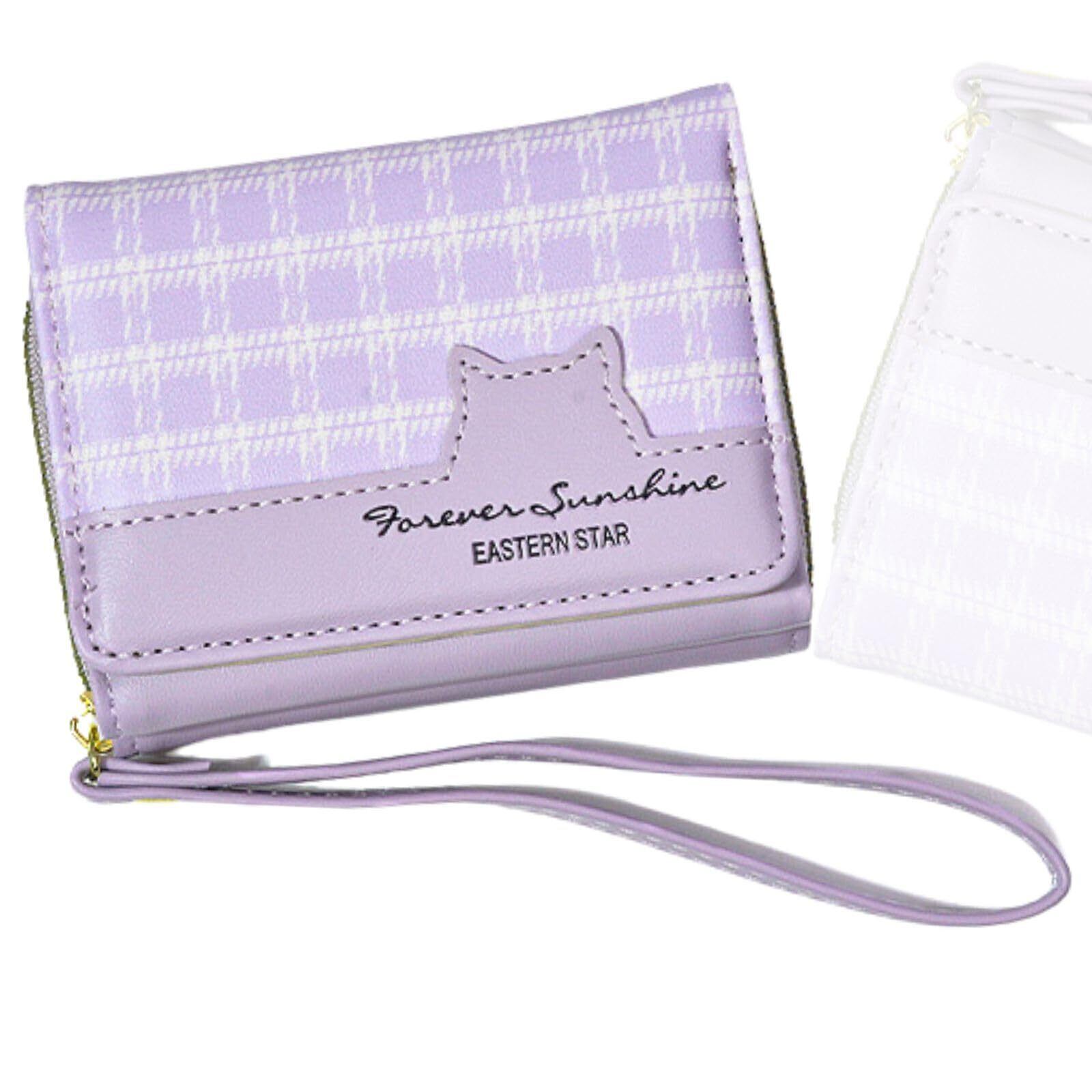 [penogo] にゃふにゃウォレット 財布 女の子 中学生 プレゼント 専用箱付き レディース 三つ折 子供 キッズ カードケース PU (パープル)